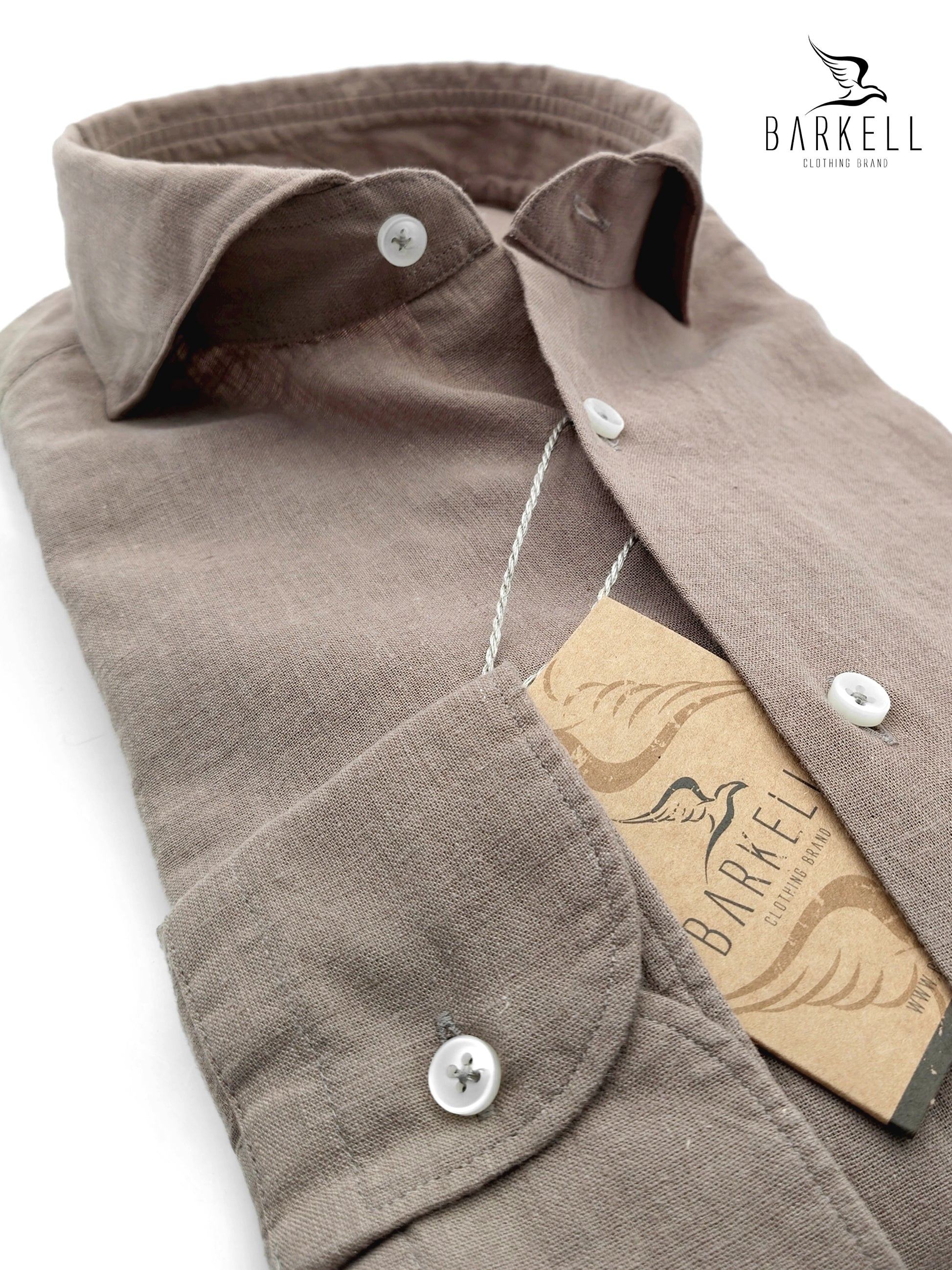 Camisa marrón claro hecho en Tejido mixto 45% Algodón 55% Lino mi Ropa lavada para darle un efecto agradable y natural.