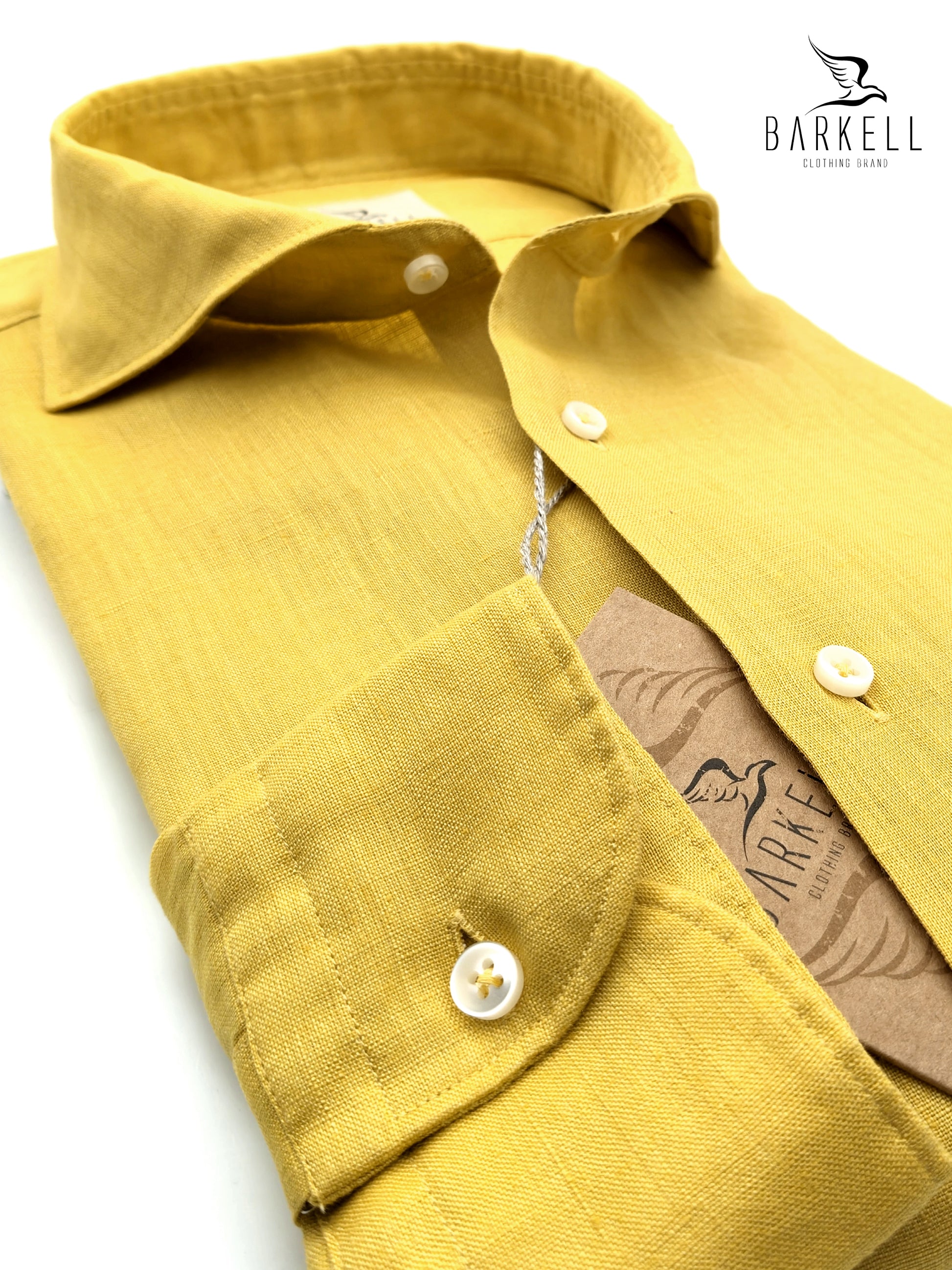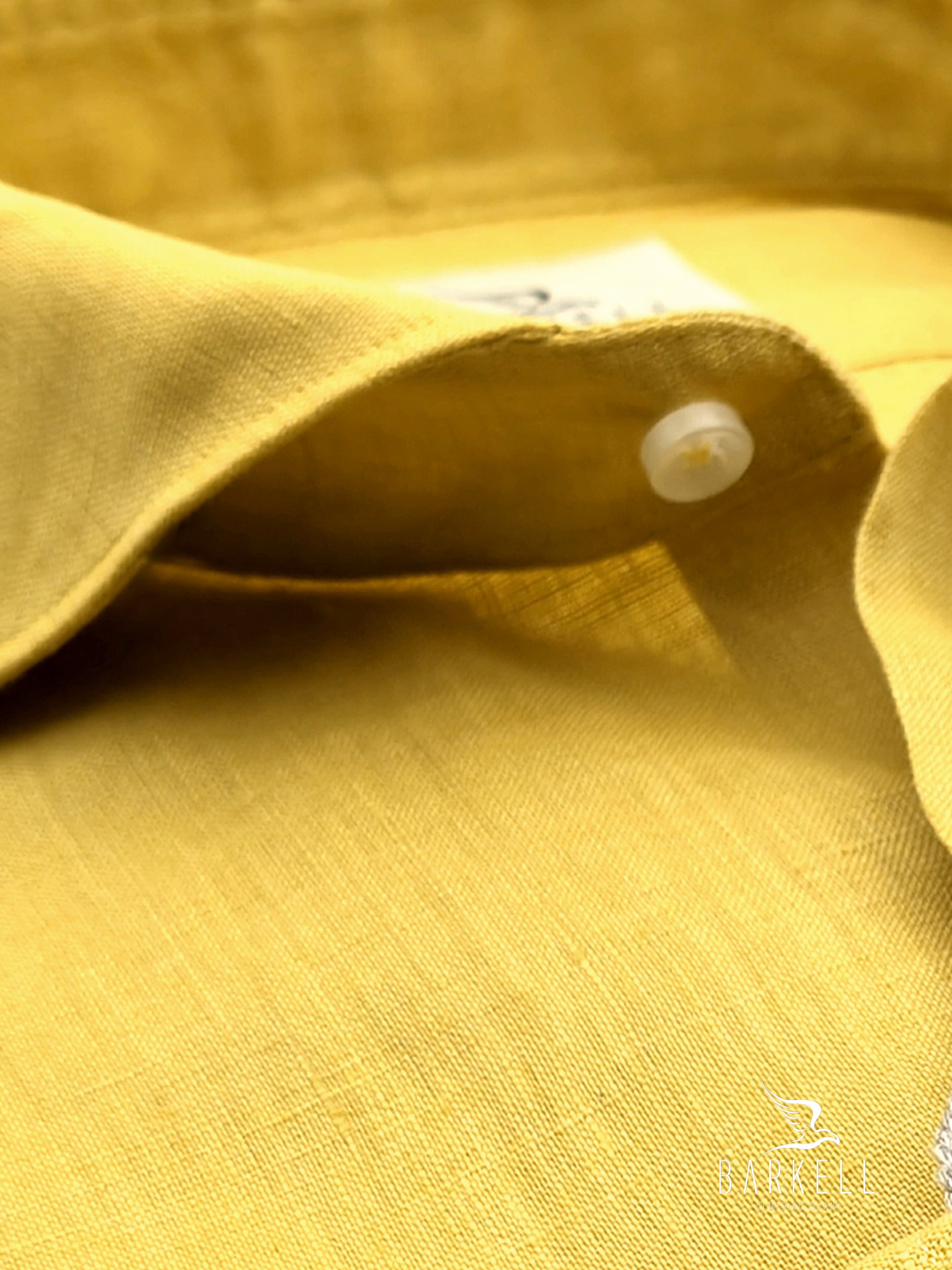 Camisa de puro lino amarillo mostaza con cuello italiano