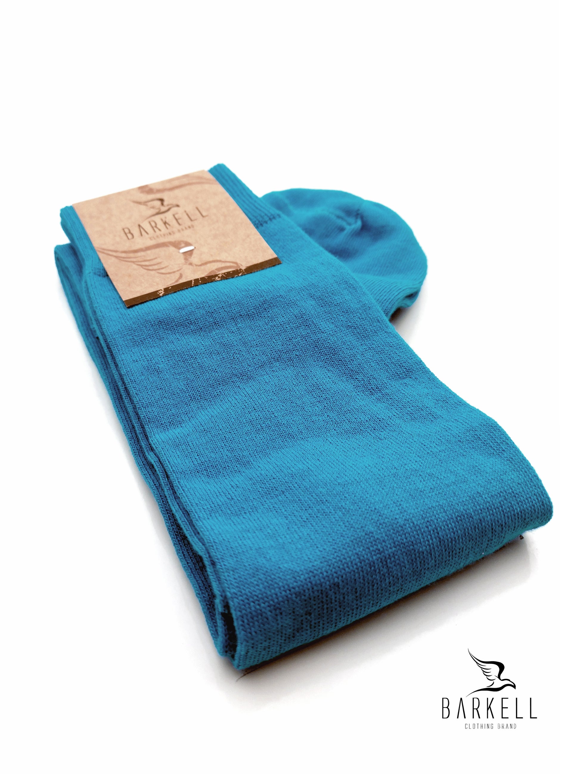 Calza Lunga Sotto il Ginocchio di Alta Qualità Made in Italy in 95% Cotone e 5% Elastan fondo Azzurro.