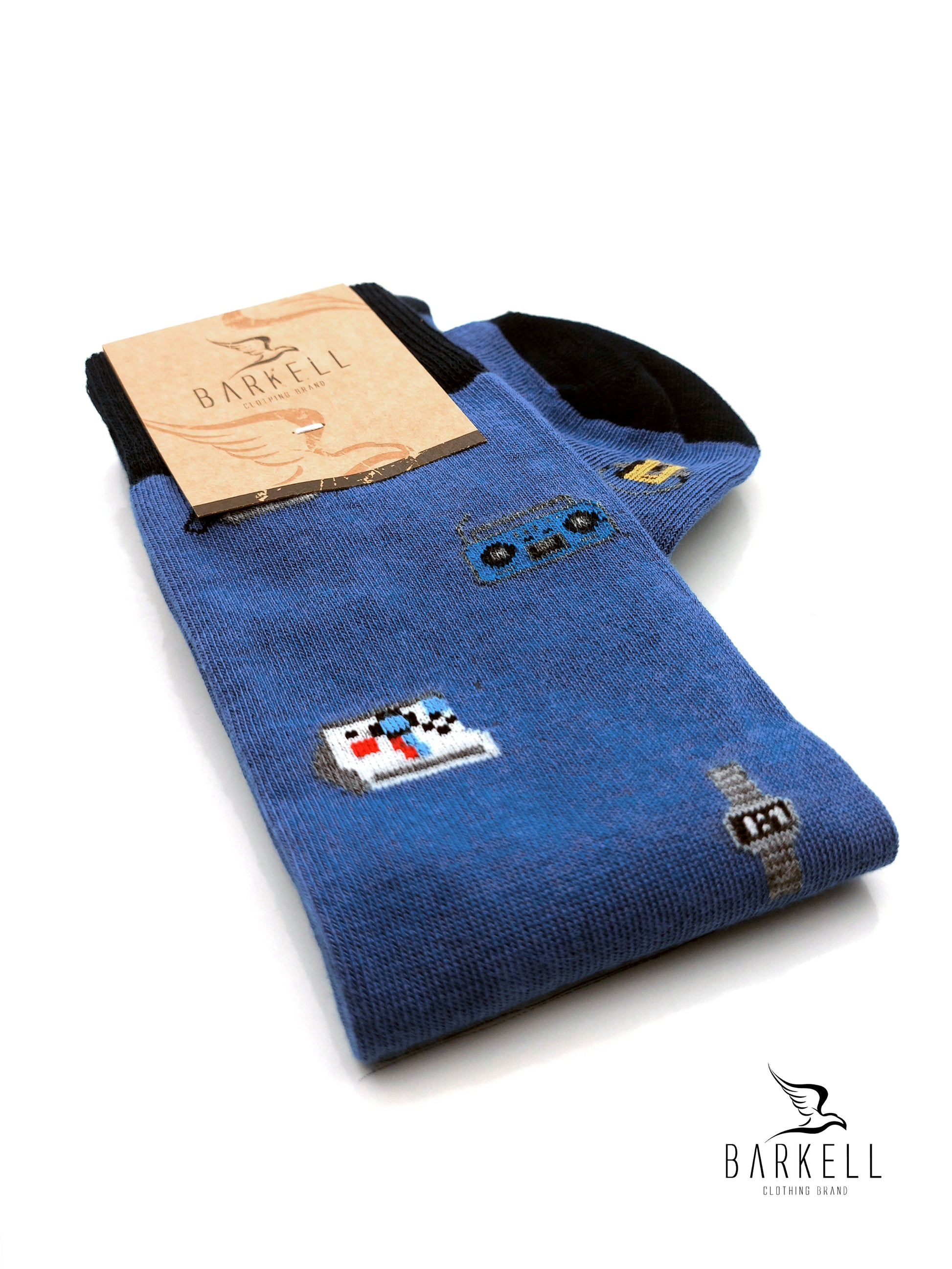Calza Lunga Sotto il Ginocchio di Alta Qualità Made in Italy in 95% Cotone e 5% Elastan fondo Azzurro con fantasia Oggetti degli anni 90.