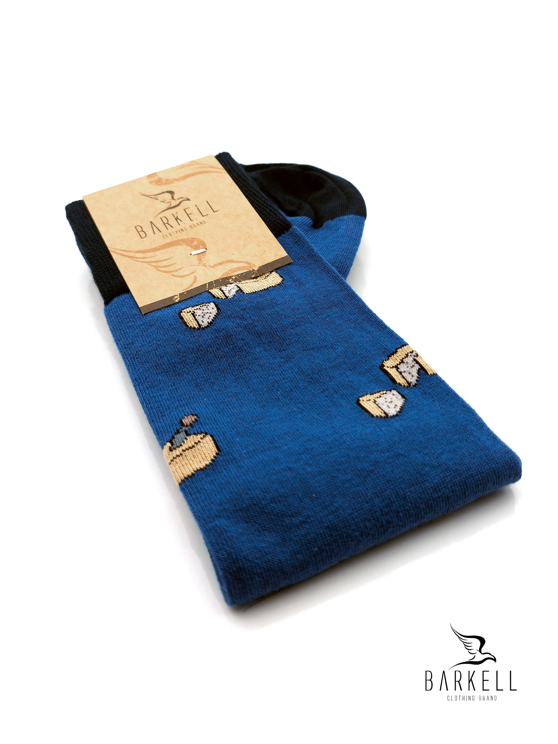 Calza Lunga Sotto il Ginocchio di Alta Qualità Made in Italy in 95% Cotone e 5% Elastan fondo Azzurro con fantasia Grana.