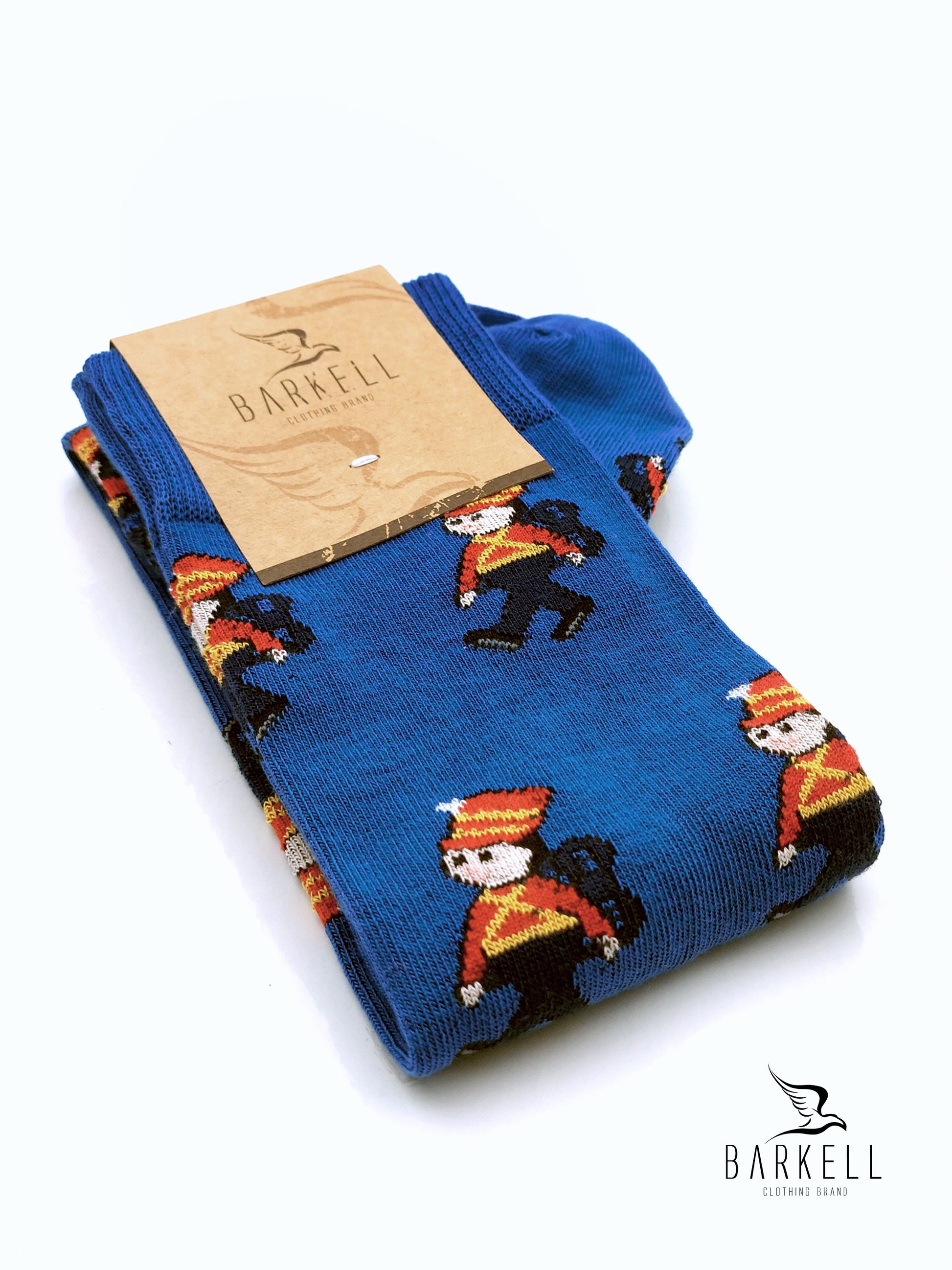 Calza Lunga Sotto il Ginocchio di Alta Qualità Made in Italy in 95% Cotone e 5% Elastan fondo Azzurro con fantasia Soldatino.