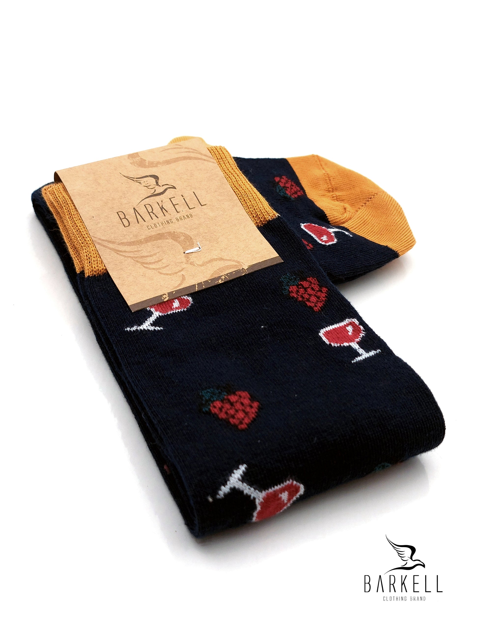 Calza Lunga Sotto il Ginocchio di Alta Qualità Made in Italy in 95% Cotone e 5% Elastan fondo Blu con fantasia Calici.