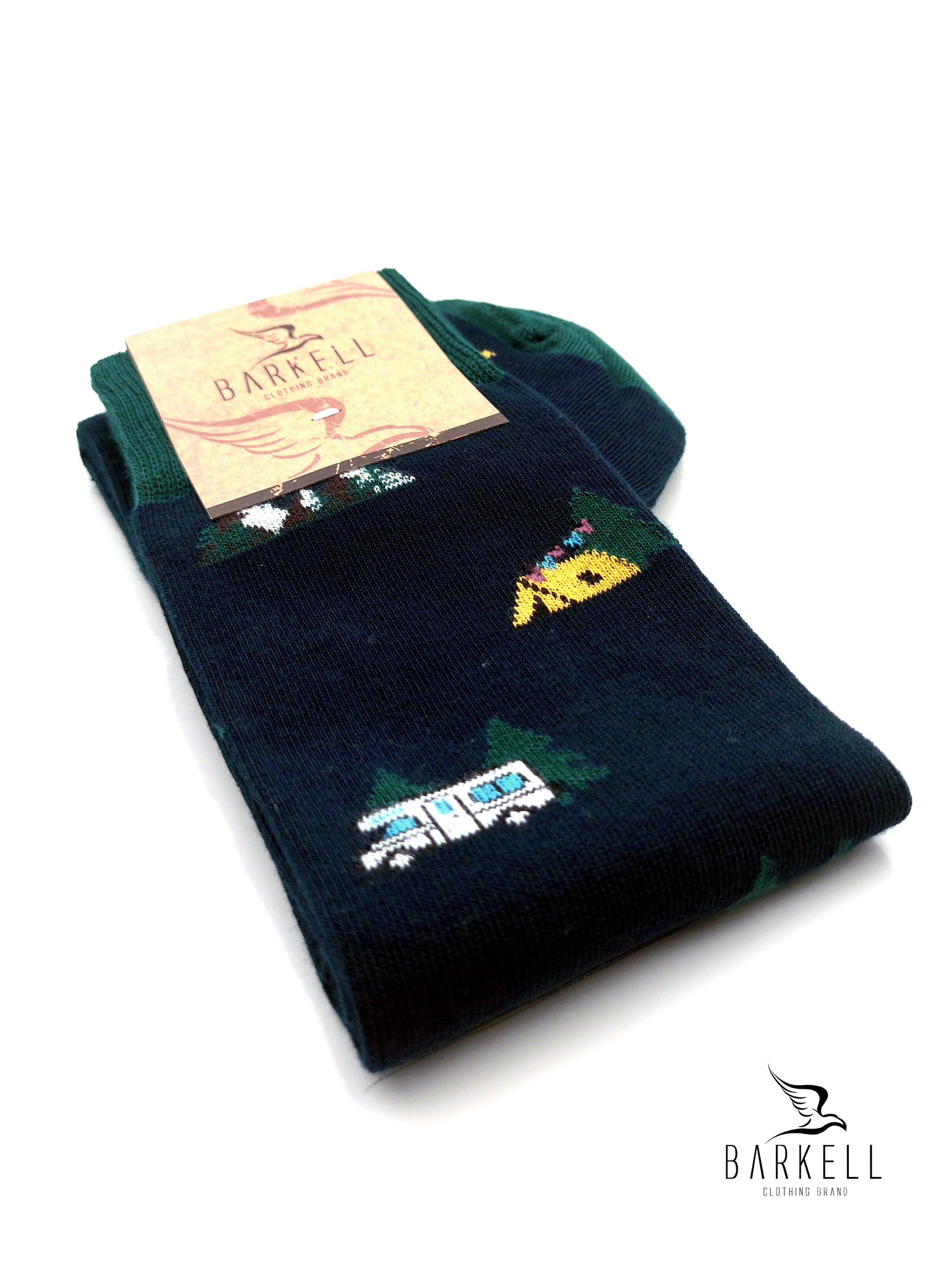 Calza Lunga Sotto il Ginocchio di Alta Qualità Made in Italy in 95% Cotone e 5% Elastan fondo Blu con fantasia Camping.