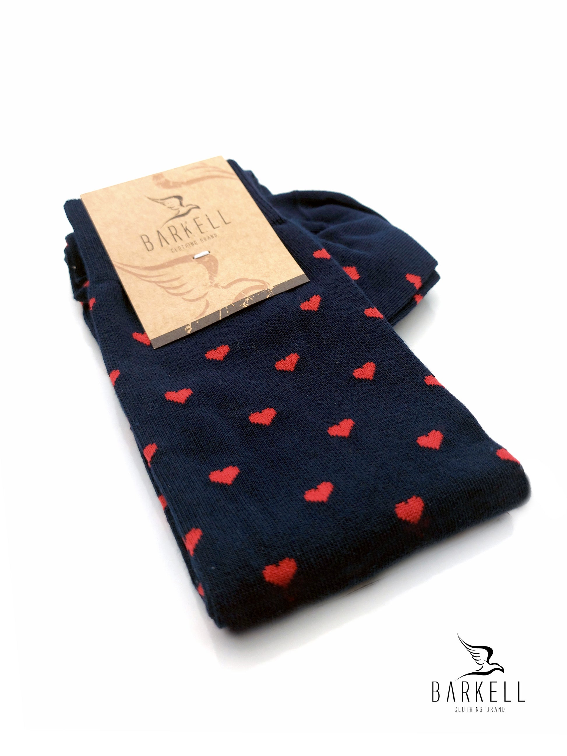 Calza Lunga Sotto il Ginocchio di Alta Qualità Made in Italy in 95% Cotone e 5% Elastan fondo Blu con fantasia Cuoricini.