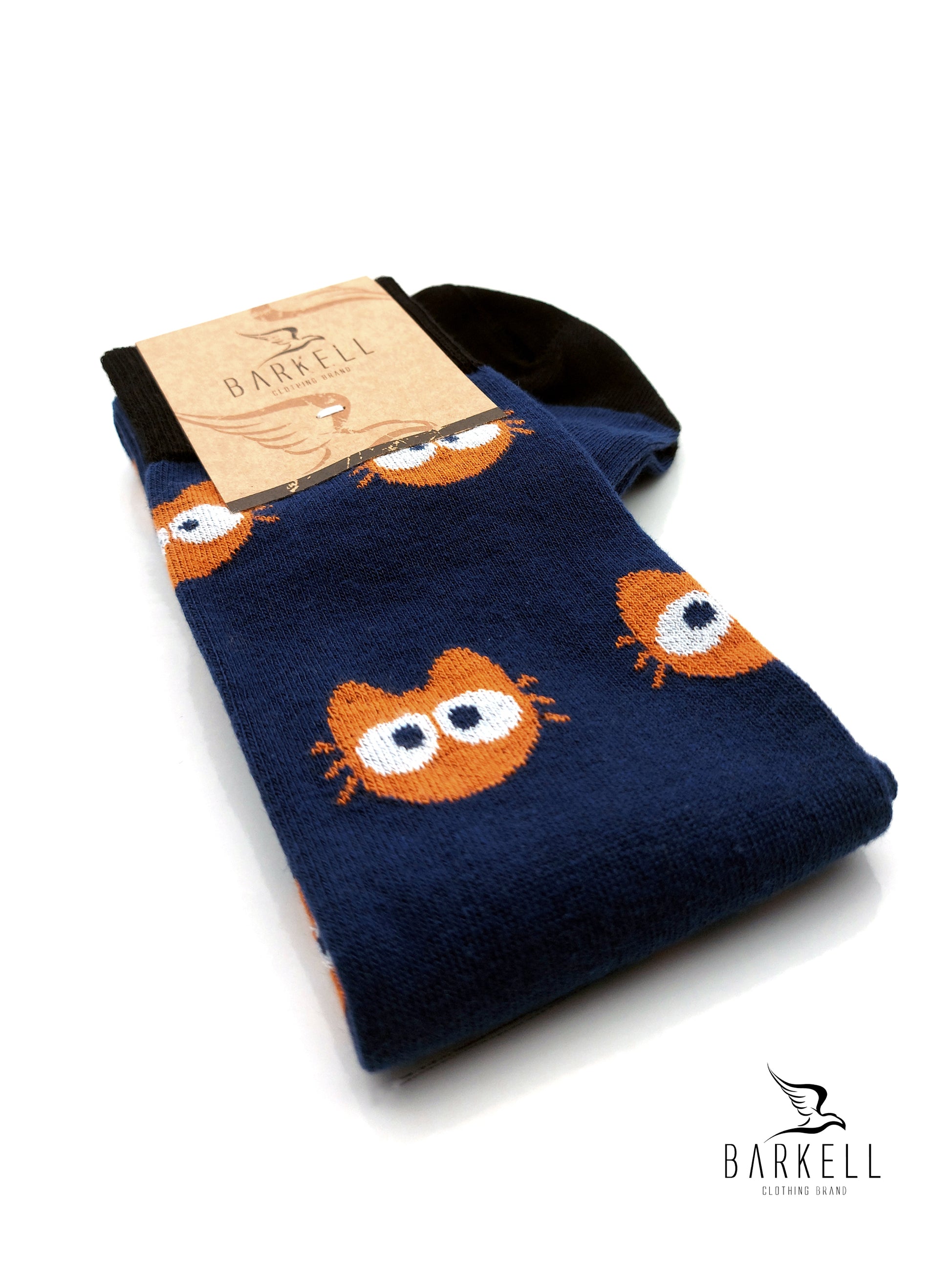Calza Lunga Sotto il Ginocchio di Alta Qualità Made in Italy in 95% Cotone e 5% Elastan fondo Blu con fantasia Gatto.