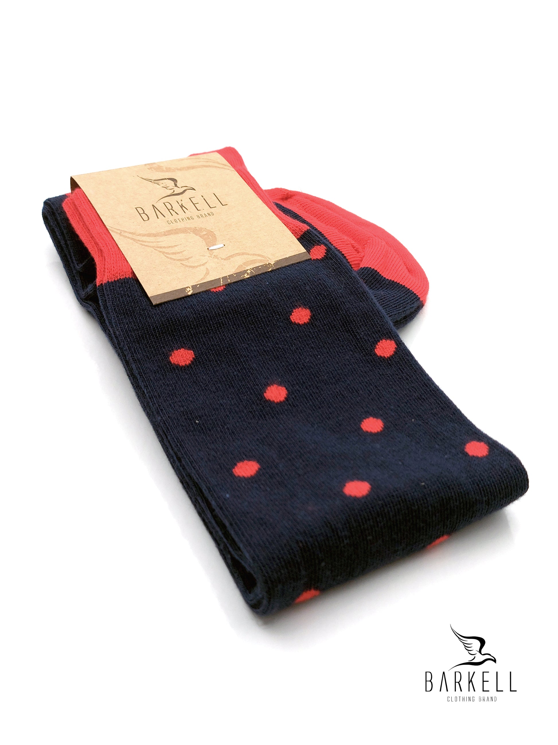 Calza Lunga Sotto il Ginocchio di Alta Qualità Made in Italy in 95% Cotone e 5% Elastan fondo Blu con fantasia Pois Piccolo.