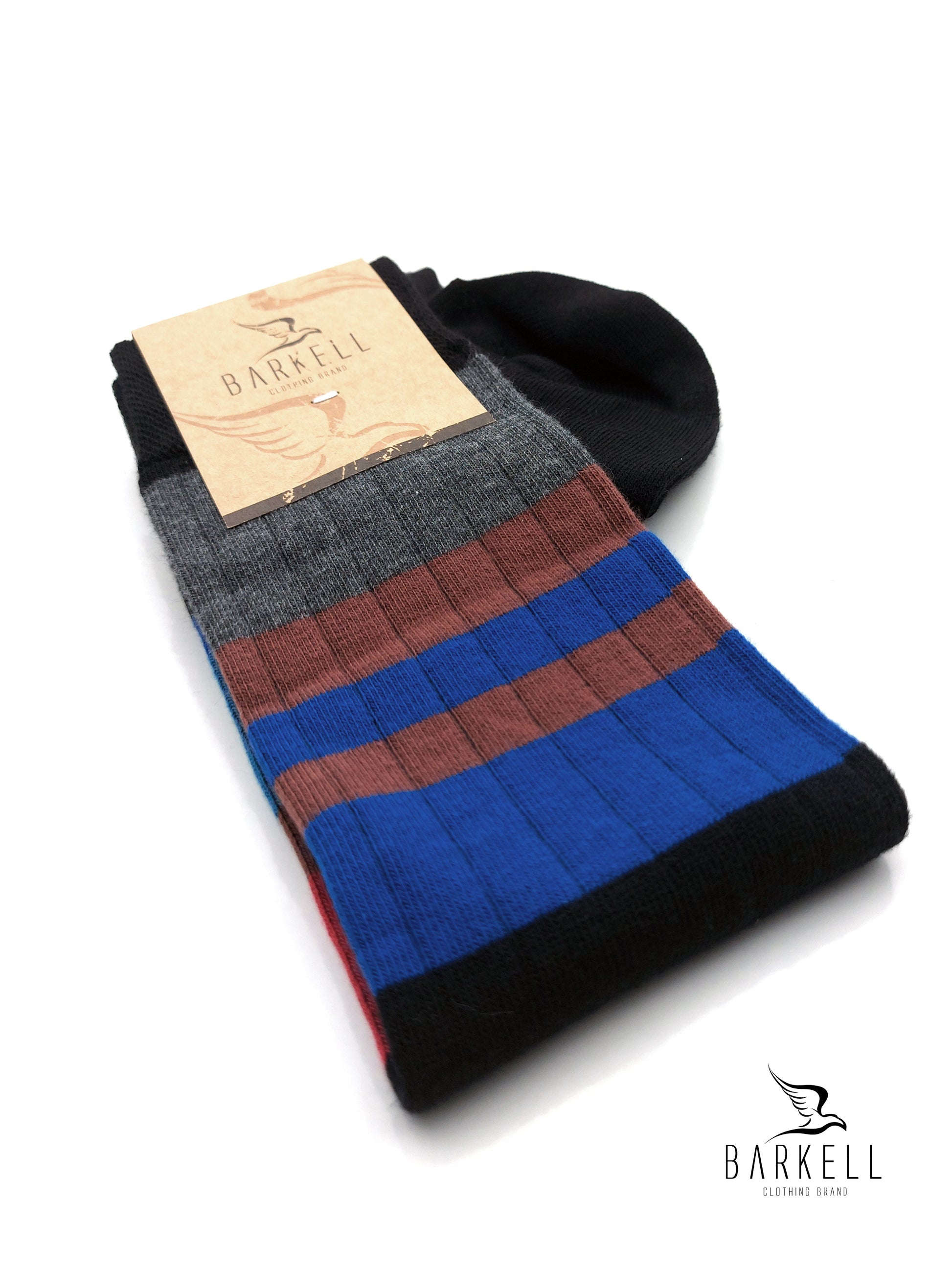 Calza Lunga Sotto il Ginocchio di Alta Qualità Made in Italy in 95% Cotone e 5% Elastan fondo Blu con fantasia Rigata Multicolor.