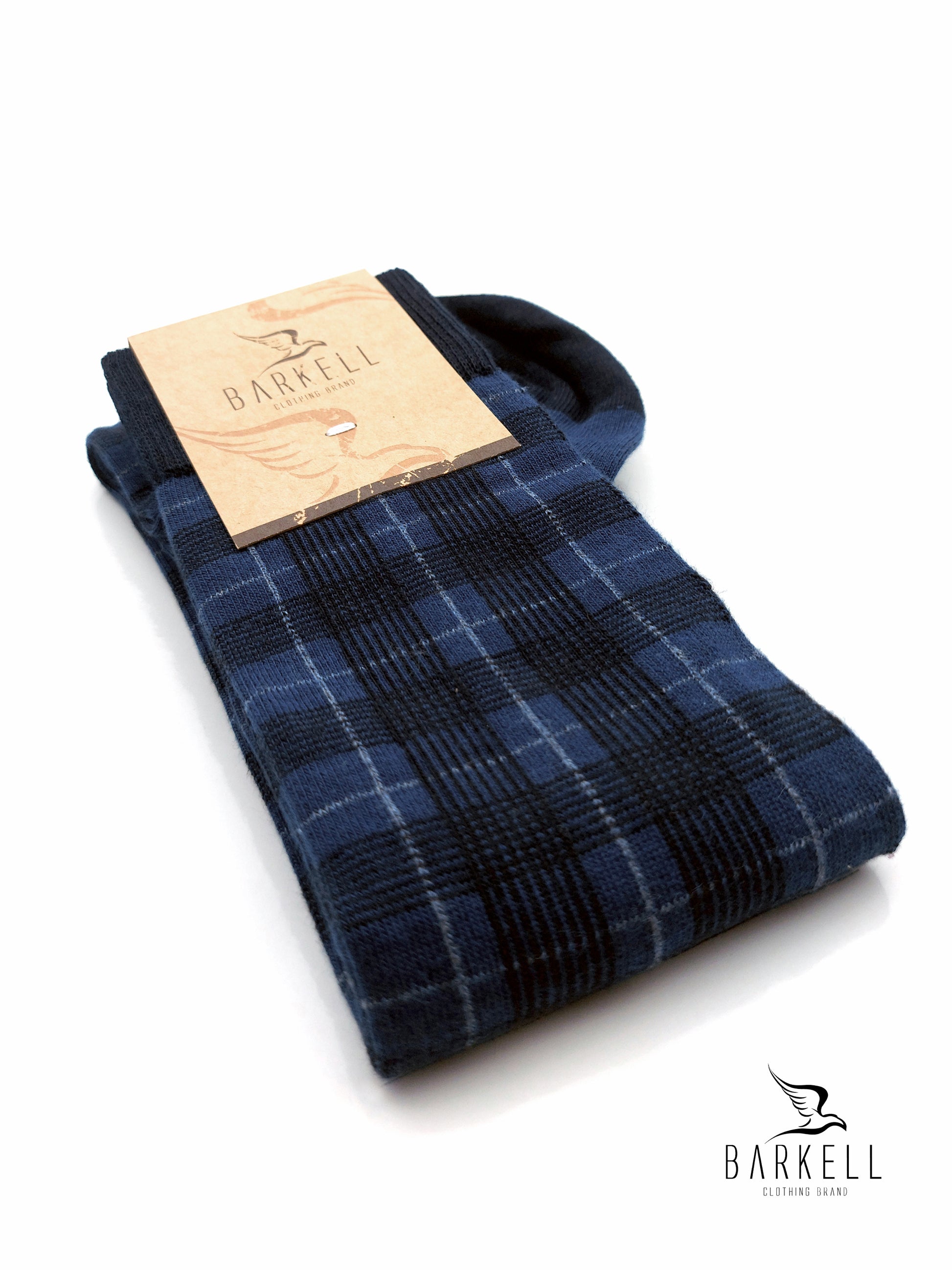Calza Lunga Sotto il Ginocchio di Alta Qualità Made in Italy in 95% Cotone e 5% Elastan fondo Blu con fantasia Scozzese Multicolor.