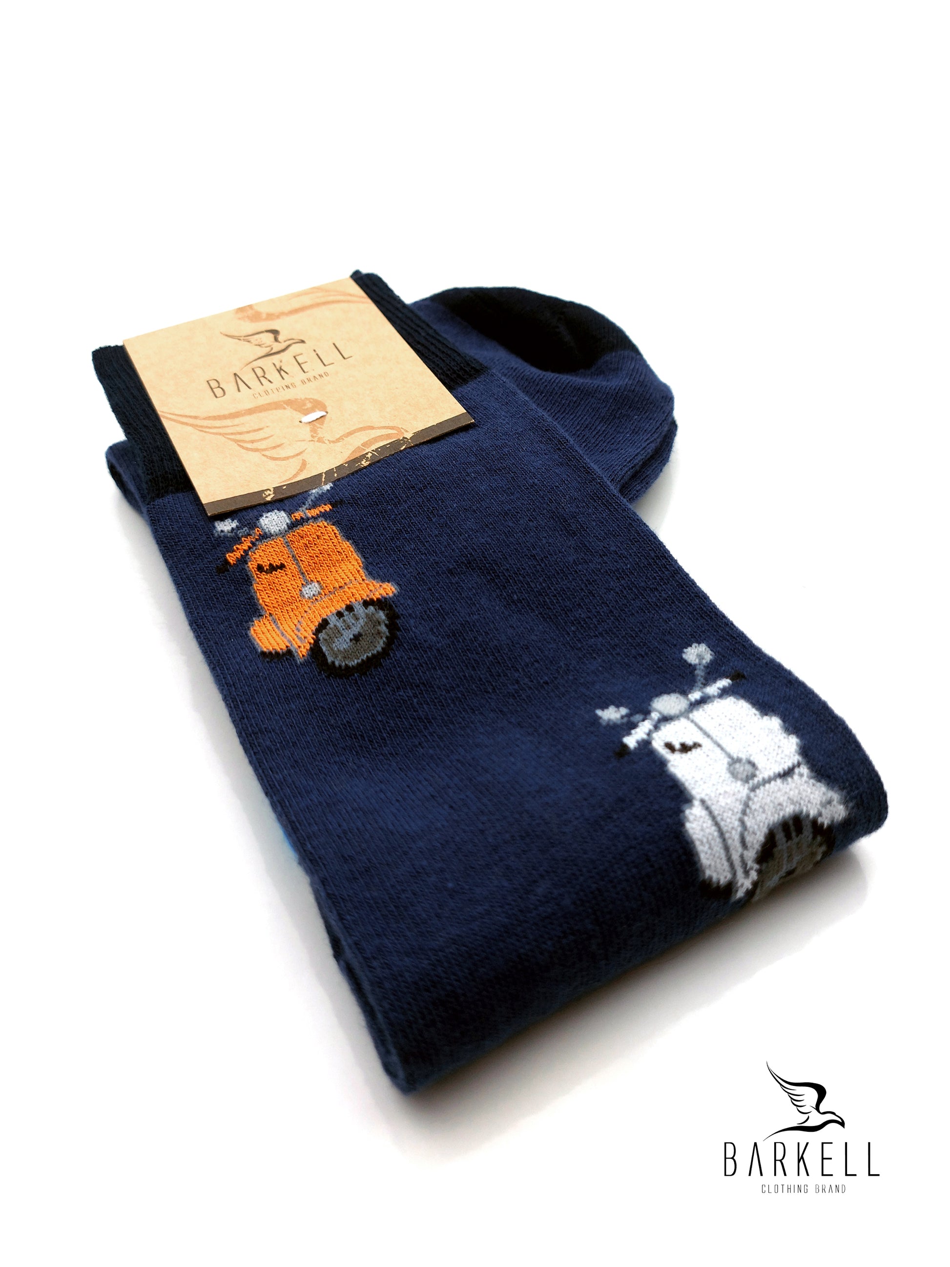 Calza Lunga Sotto il Ginocchio di Alta Qualità Made in Italy in 95% Cotone e 5% Elastan fondo Blu con fantasia Vespa.