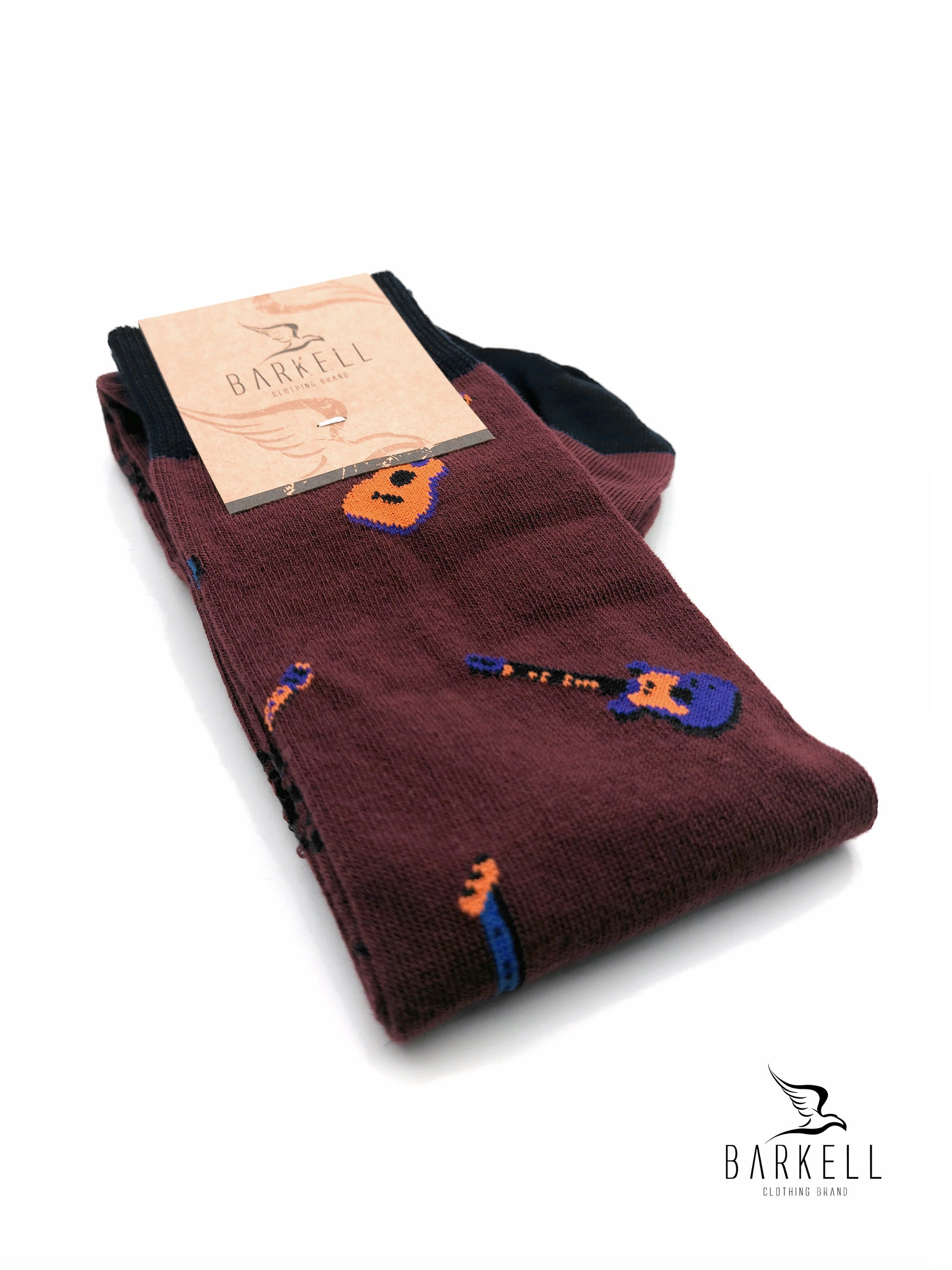 Calza Lunga In Caldo Cotone di Alta Qualità Fondo Bordò Fantasia Chitarre