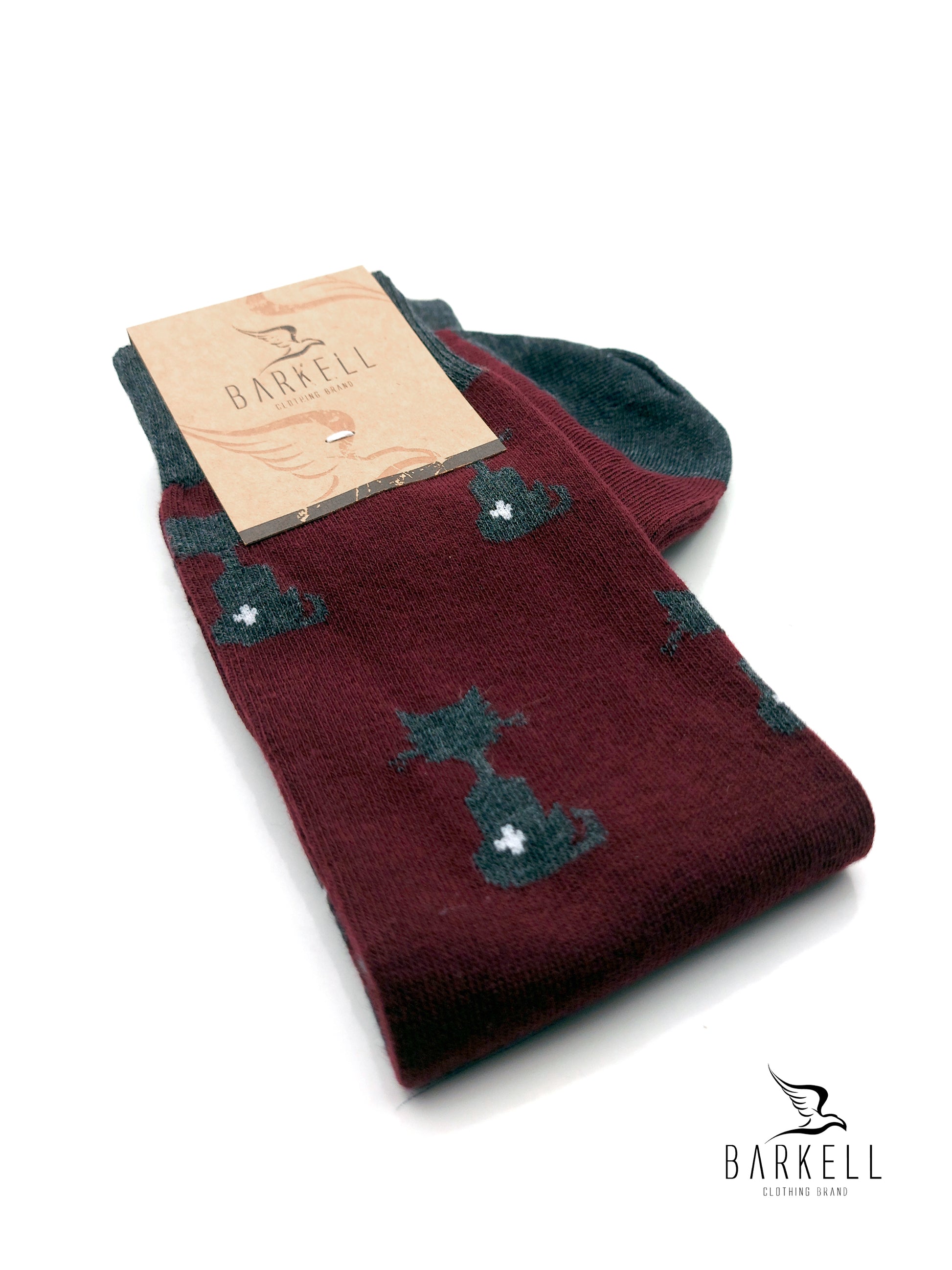 Calza Lunga Sotto il Ginocchio di Alta Qualità Made in Italy in 95% Cotone e 5% Elastan fondo Bordò con fantasia Gatto e Zampa.