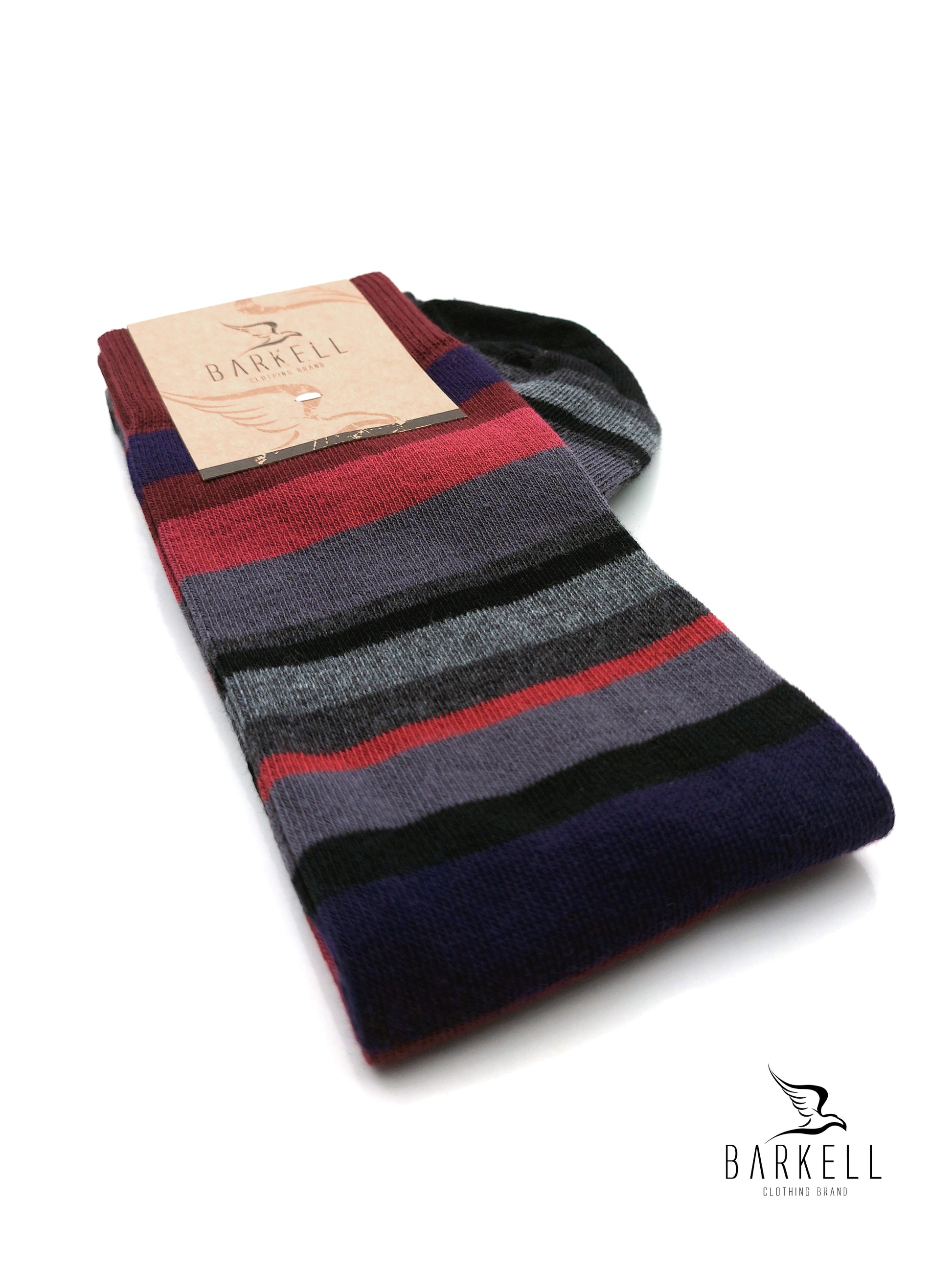 Calza Lunga Sotto il Ginocchio di Alta Qualità Made in Italy in 95% Cotone e 5% Elastan fondo Bordò con fantasia Rigata Multicolor.