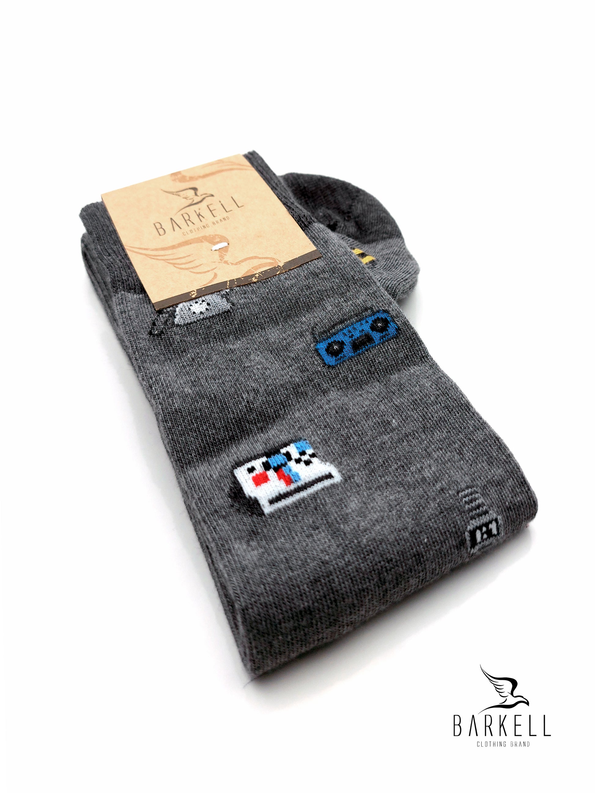 Calza Lunga Sotto il Ginocchio di Alta Qualità Made in Italy in 95% Cotone e 5% Elastan fondo Grigio con fantasia Oggetti degli anni 90.