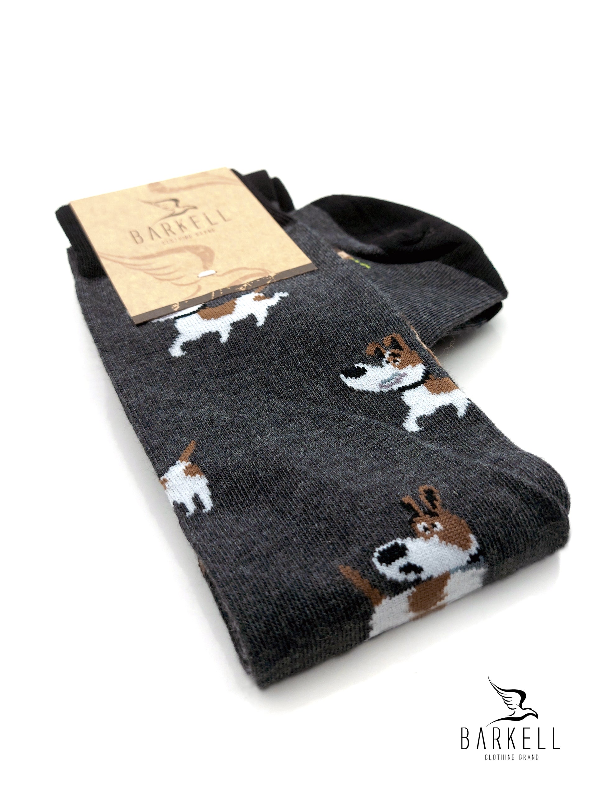 Calza Lunga Sotto il Ginocchio di Alta Qualità Made in Italy in 95% Cotone e 5% Elastan fondo Grigio con fantasia Cane e Cuccia.