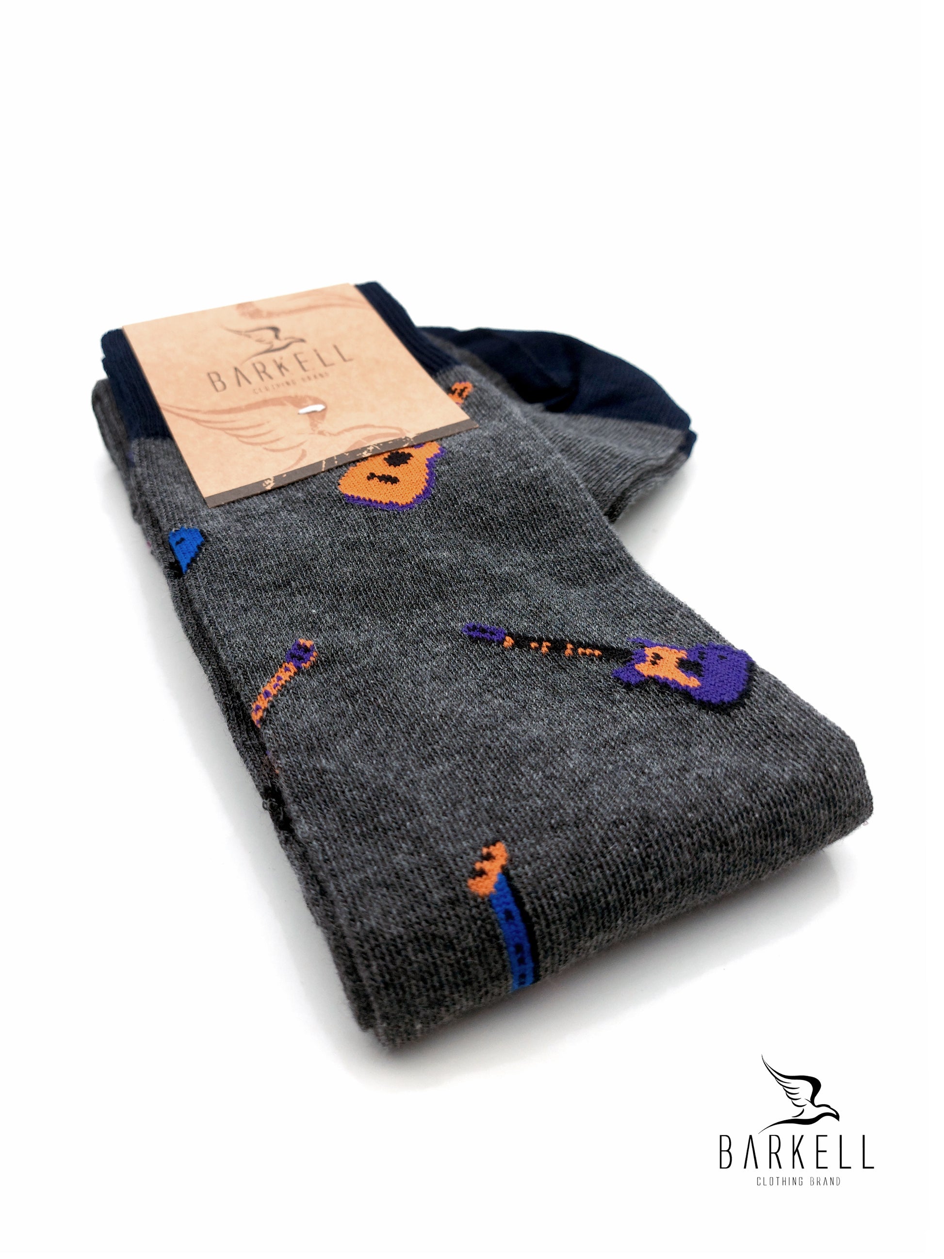 Calza Lunga In Caldo Cotone di Alta Qualità Fondo Grigio Fantasia Chitarre