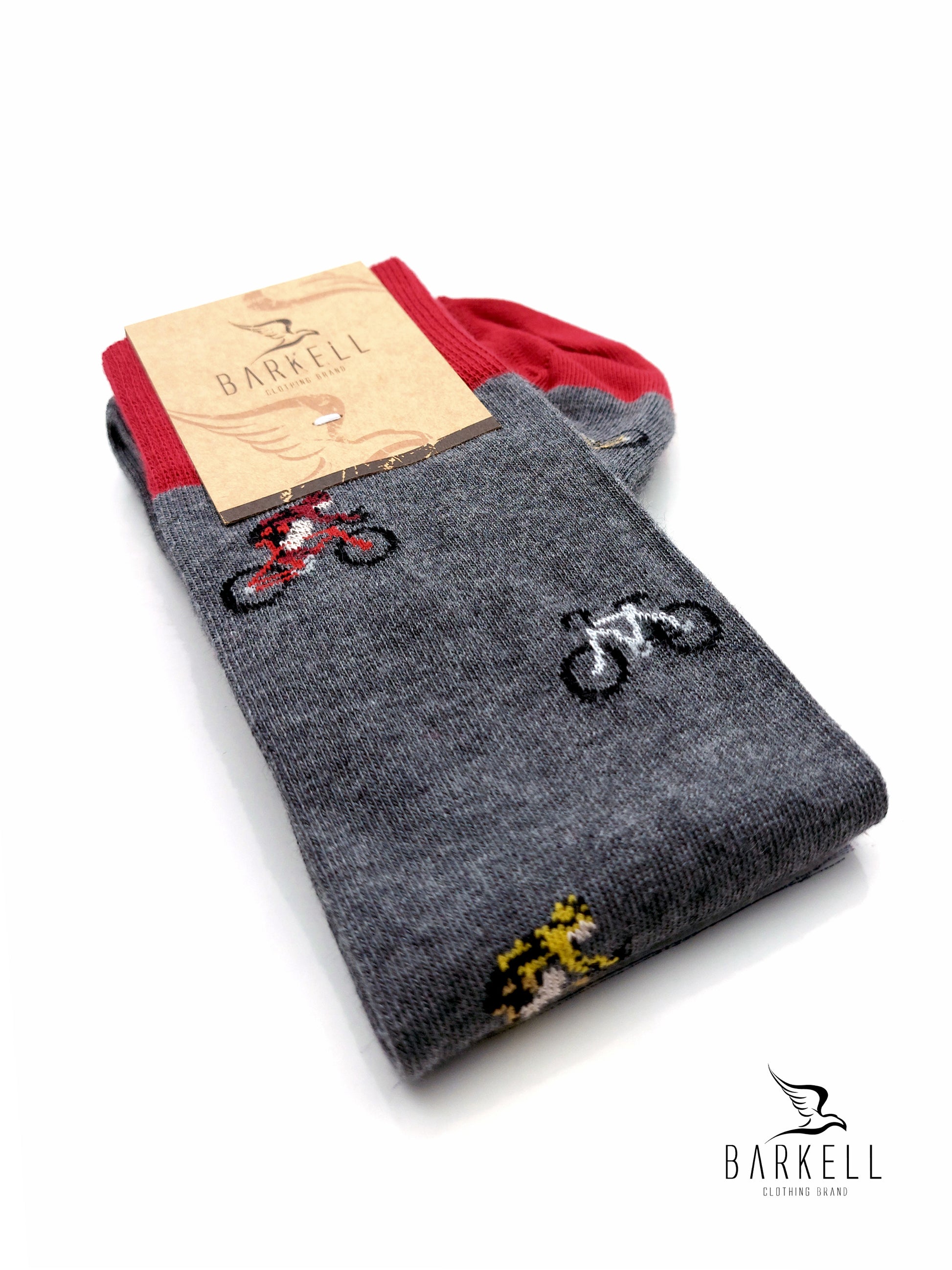 Calza Lunga Sotto il Ginocchio di Alta Qualità Made in Italy in 95% Cotone e 5% Elastan fondo Grigio con fantasia Ciclista.