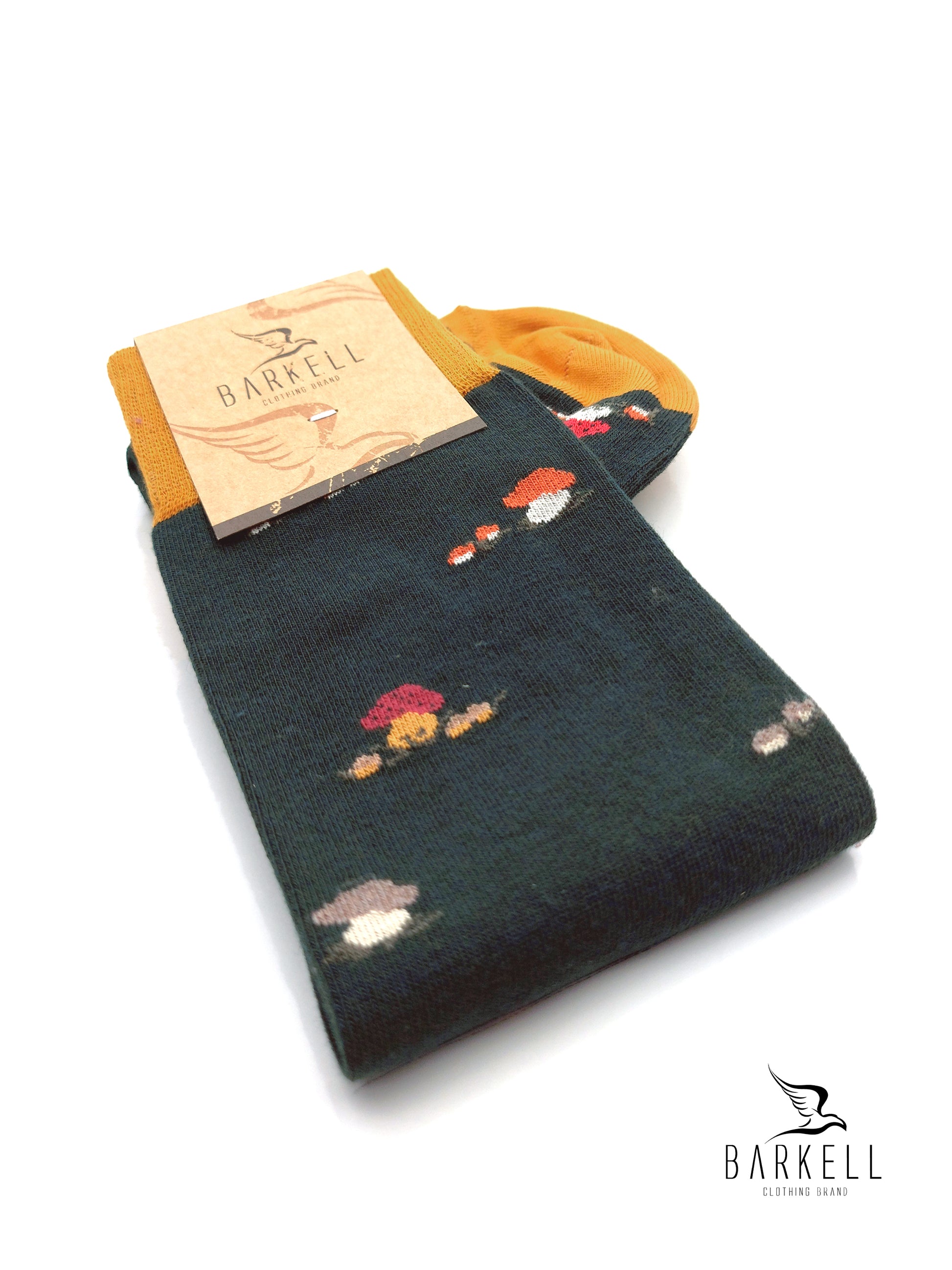 Calza Lunga Sotto il Ginocchio di Alta Qualità Made in Italy in 95% Cotone e 5% Elastan fondo Verdone con fantasia Funghetti.