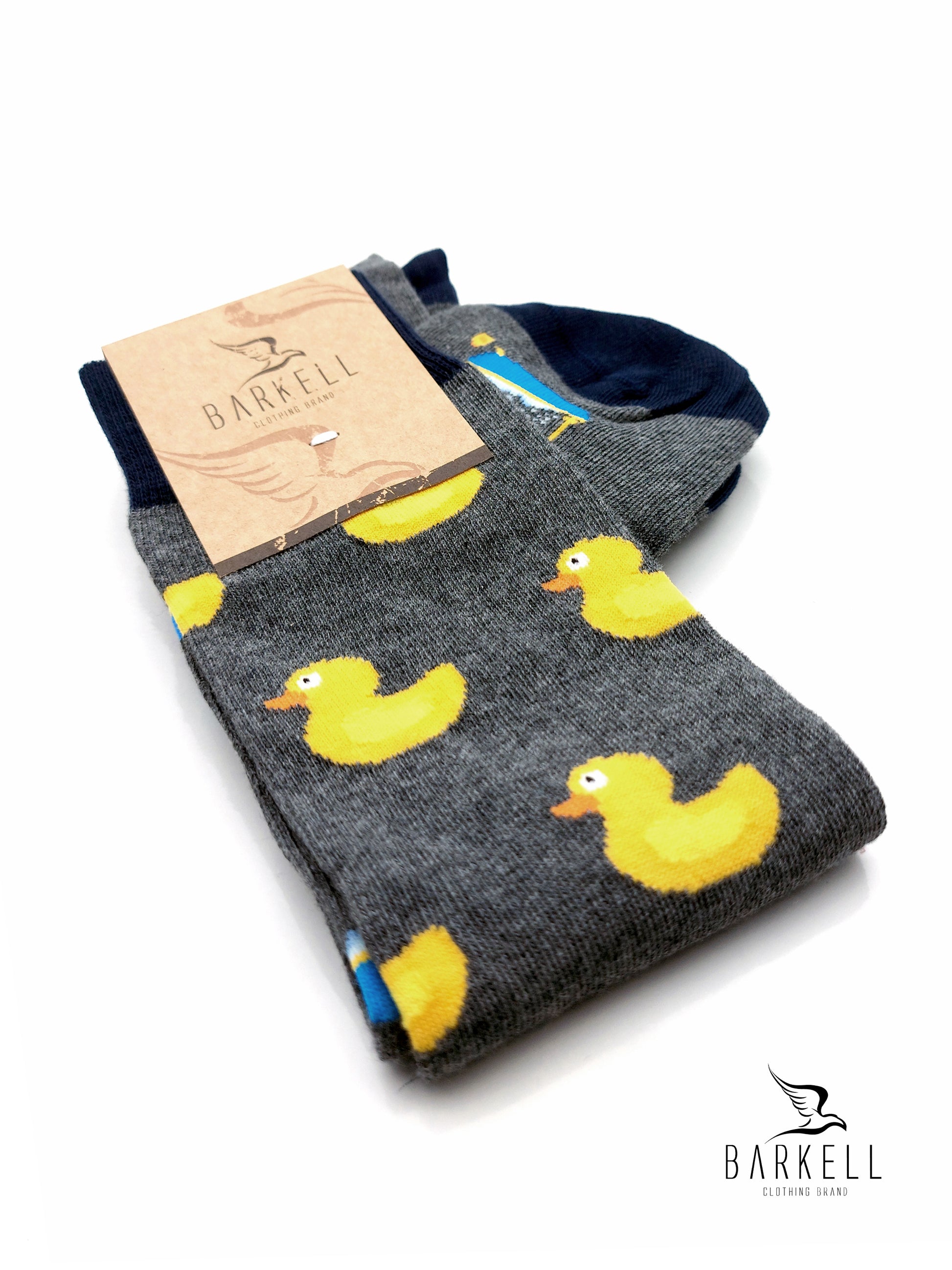 Calza Lunga Sotto il Ginocchio di Alta Qualità Made in Italy in 95% Cotone e 5% Elastan fondo Grigio con fantasia Paperella e Vasca.