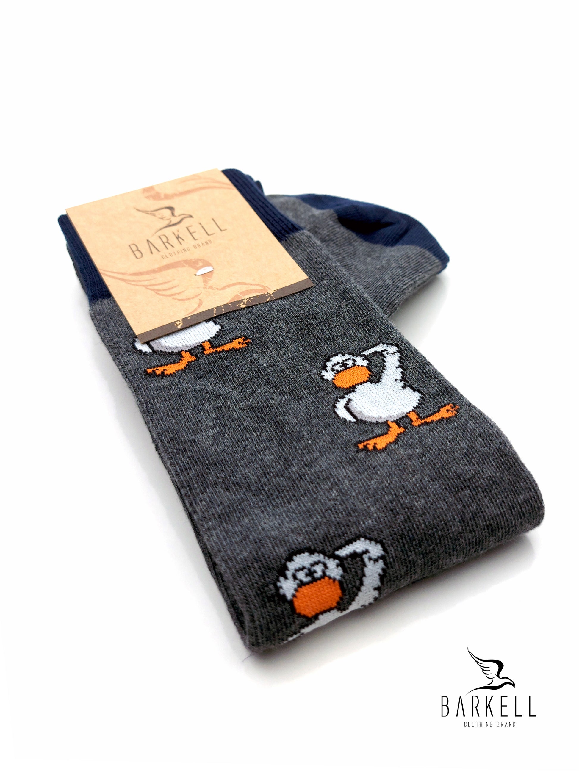 Calza Lunga Sotto il Ginocchio di Alta Qualità Made in Italy in 95% Cotone e 5% Elastan fondo Grigio con fantasia Paperotto.