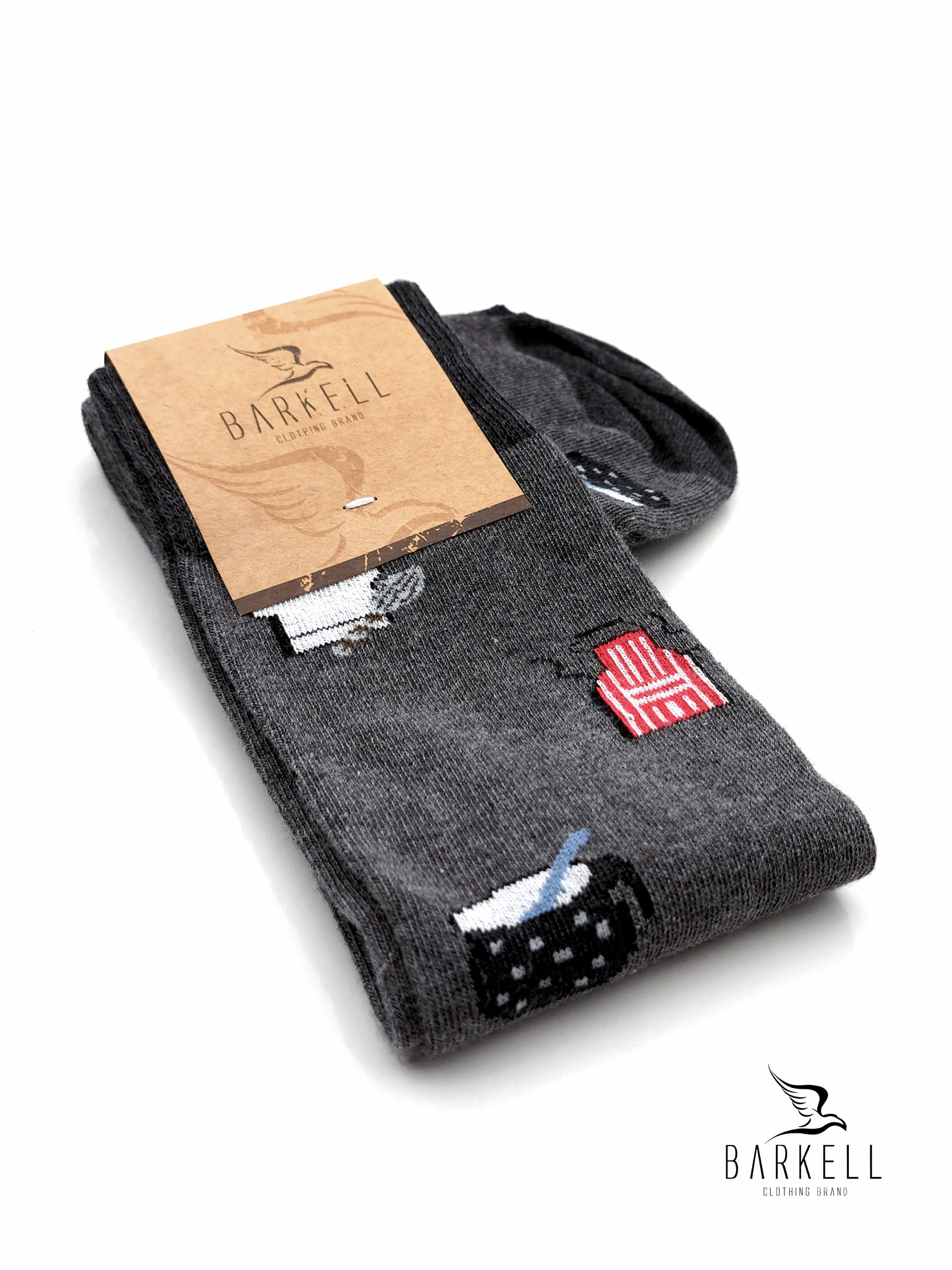 Calza Lunga Sotto il Ginocchio di Alta Qualità Made in Italy in 95% Cotone e 5% Elastan fondo Grigio con fantasia Pasticciere.