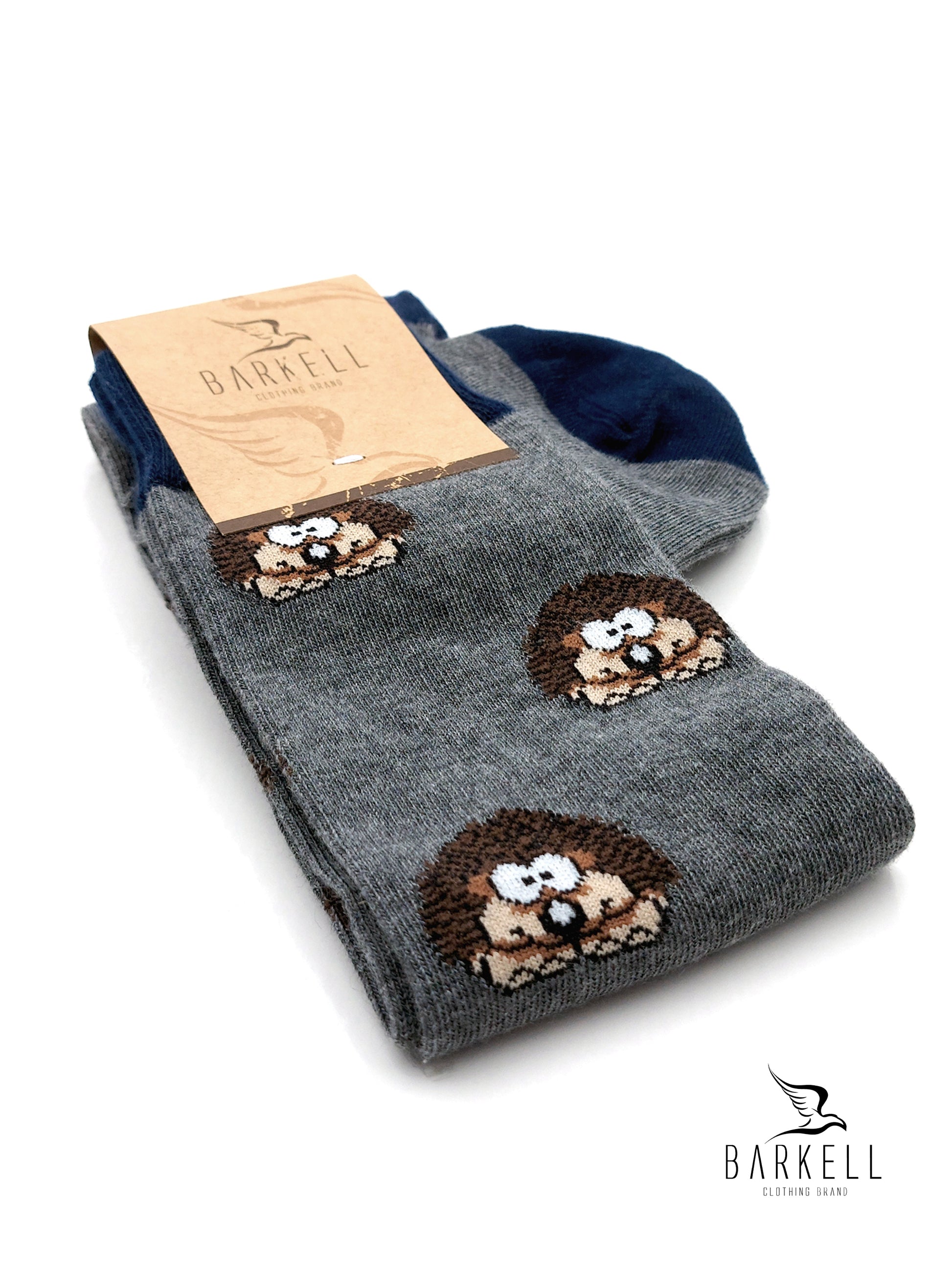 Calza Lunga Sotto il Ginocchio di Alta Qualità Made in Italy in 95% Cotone e 5% Elastan fondo Grigio con fantasia Riccio.