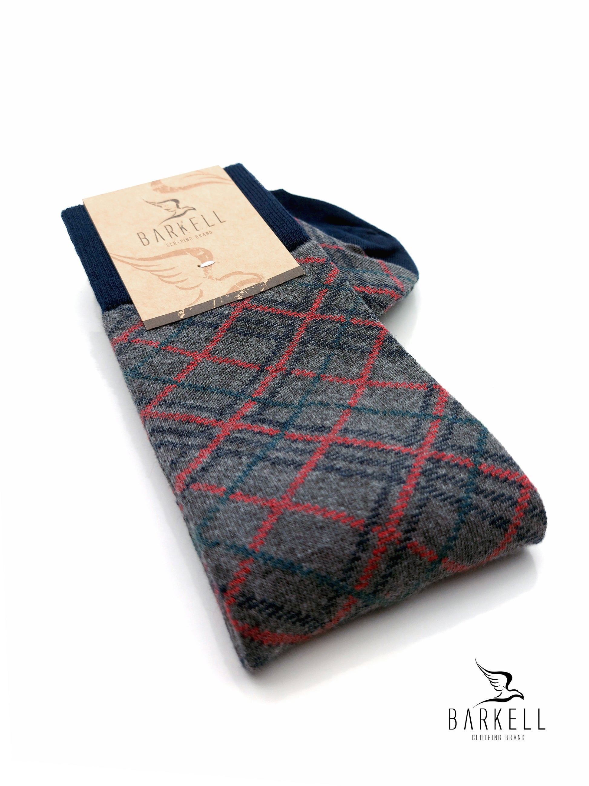 Calza Lunga In Caldo Cotone di Alta Qualità Fondo Grigio Fantasia Rombi Multicolor