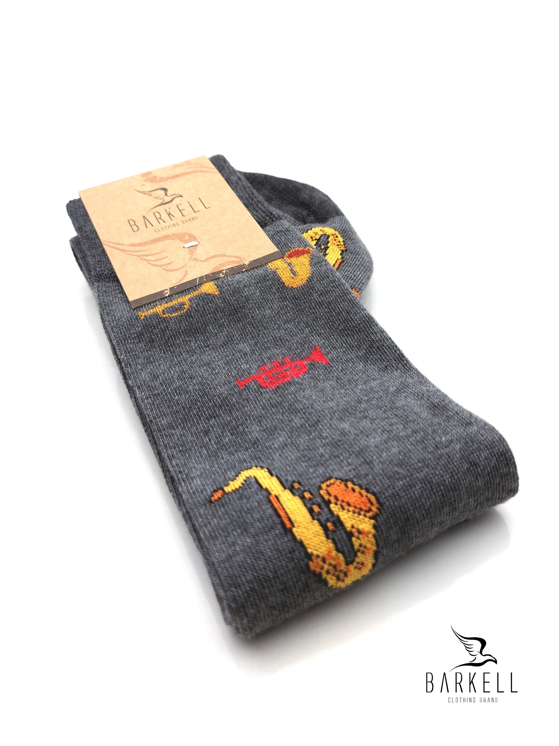 Calza Lunga Sotto il Ginocchio di Alta Qualità Made in Italy in 95% Cotone e 5% Elastan fondo Grigio con fantasia Sax.
