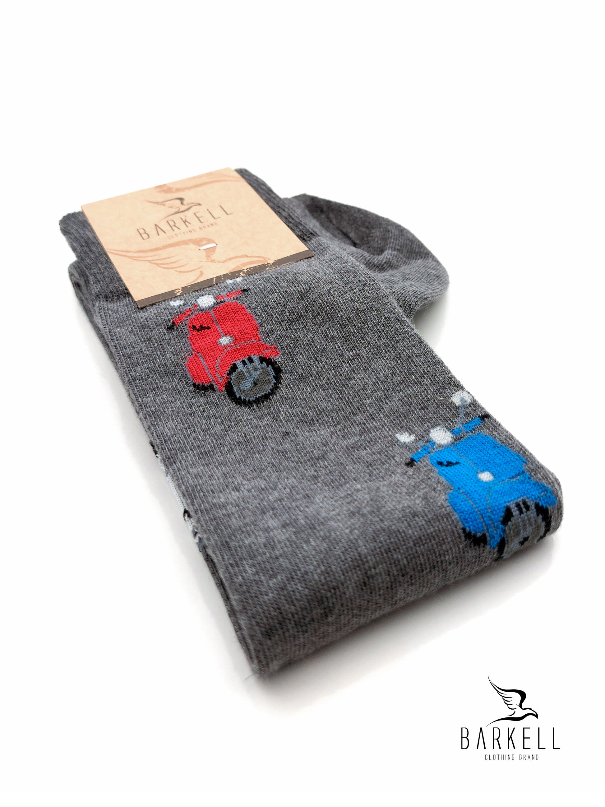Calza Lunga Sotto il Ginocchio di Alta Qualità Made in Italy in 95% Cotone e 5% Elastan fondo Grigio con fantasia Vespa.