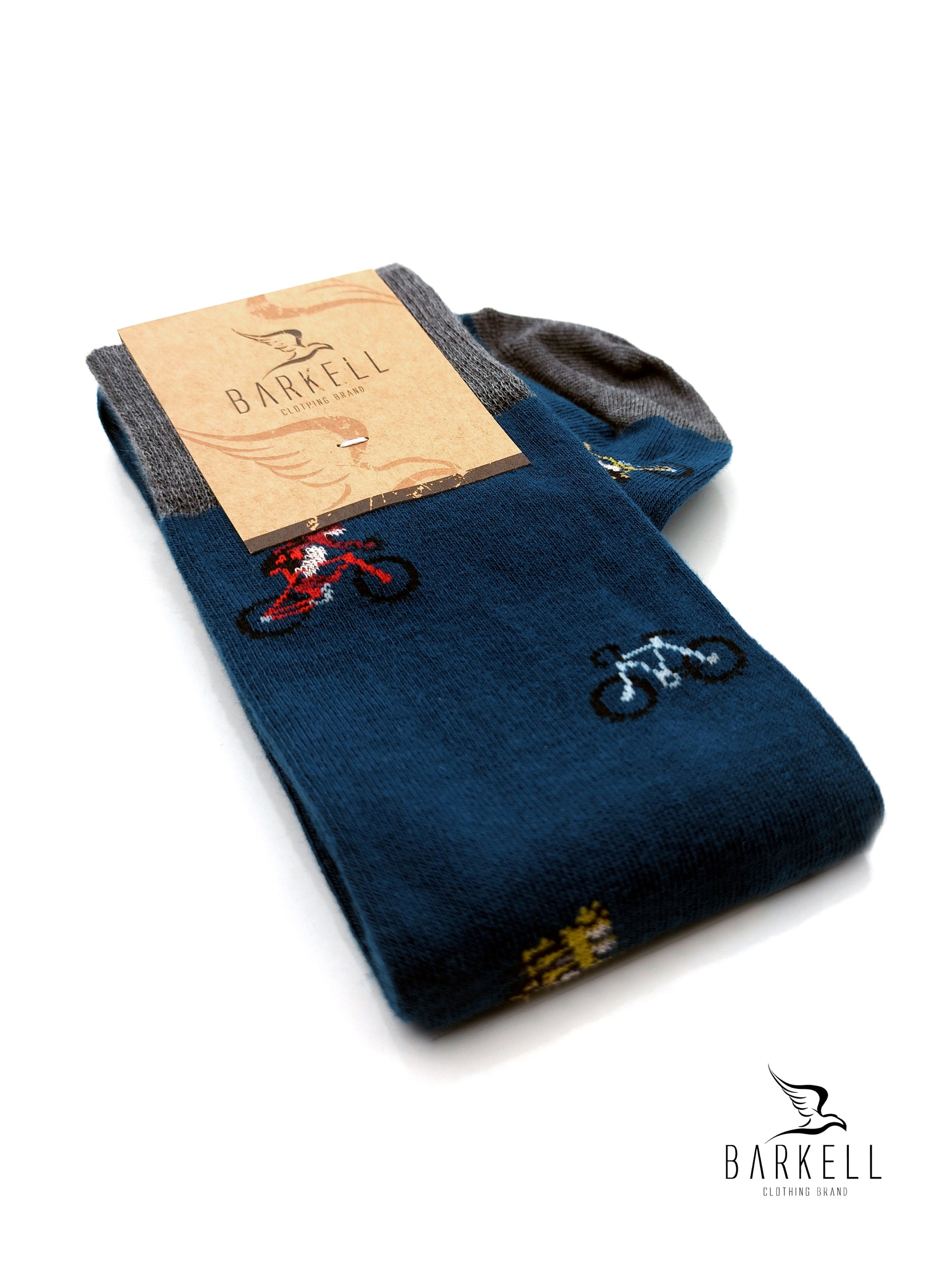 Calza Lunga Sotto il Ginocchio di Alta Qualità Made in Italy in 95% Cotone e 5% Elastan fondo Indaco con fantasia Ciclista.