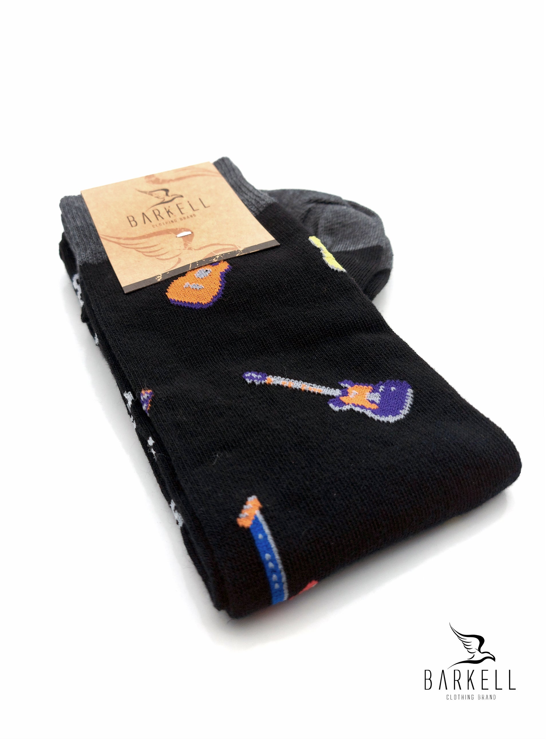 Calza Lunga In Caldo Cotone di Alta Qualità Fondo Nero Fantasia Chitarre
