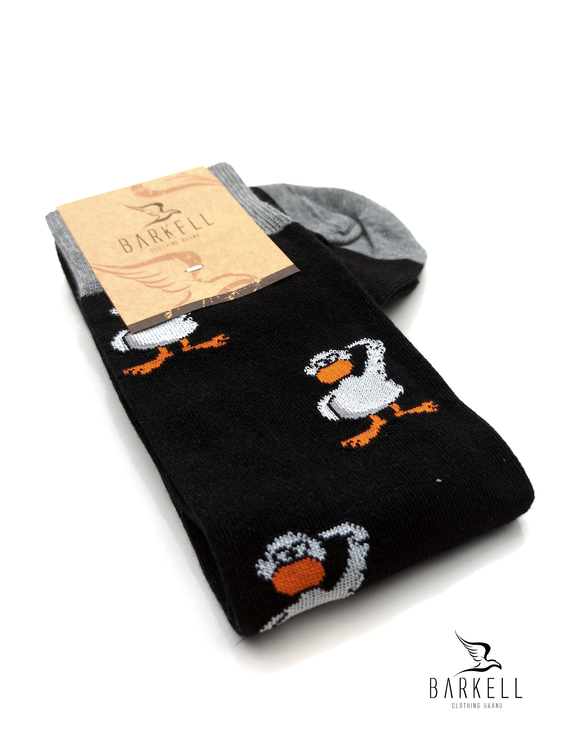 Calza Lunga Sotto il Ginocchio di Alta Qualità Made in Italy in 95% Cotone e 5% Elastan fondo Nero con fantasia Paperotto.
