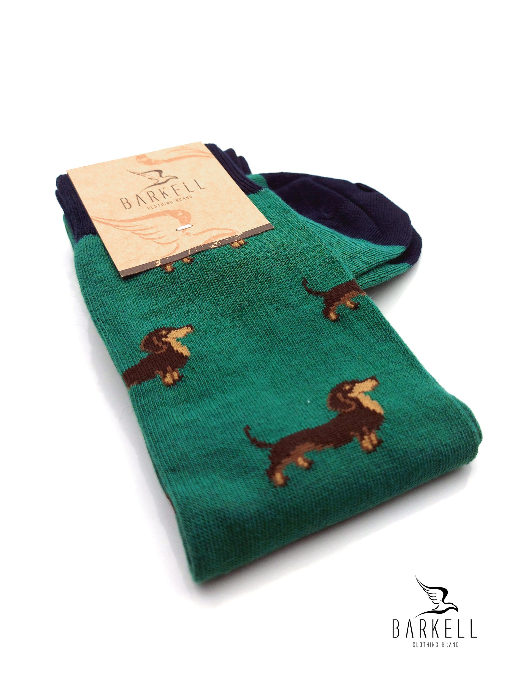 Calza Lunga Sotto il Ginocchio di Alta Qualità Made in Italy in 95% Cotone e 5% Elastan fondo Verde con fantasia Bassotto.