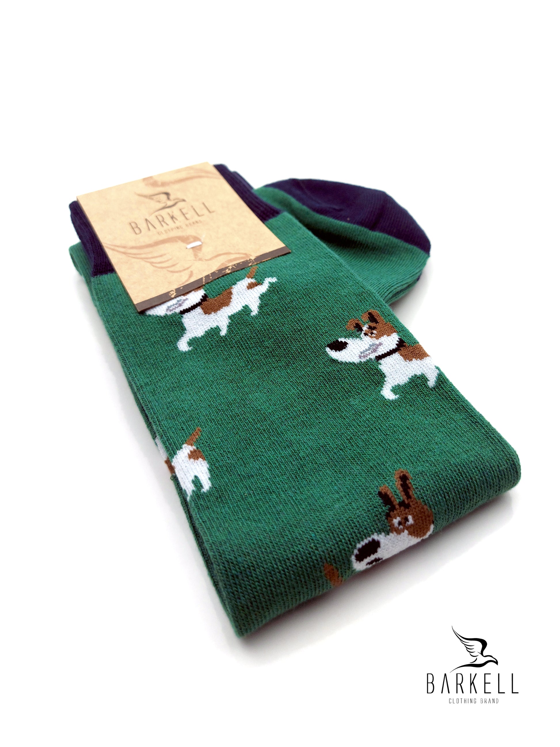 Calza Lunga Sotto il Ginocchio di Alta Qualità Made in Italy in 95% Cotone e 5% Elastan fondo Verde con fantasia Cane e Cuccia.