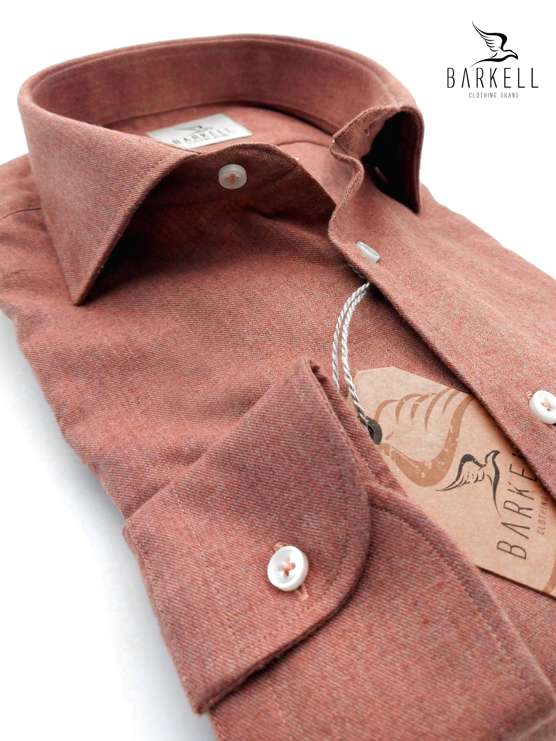 Camicia Tinta Unita Mattone realizzata in Tessuto Flanellato 100% Cotone.