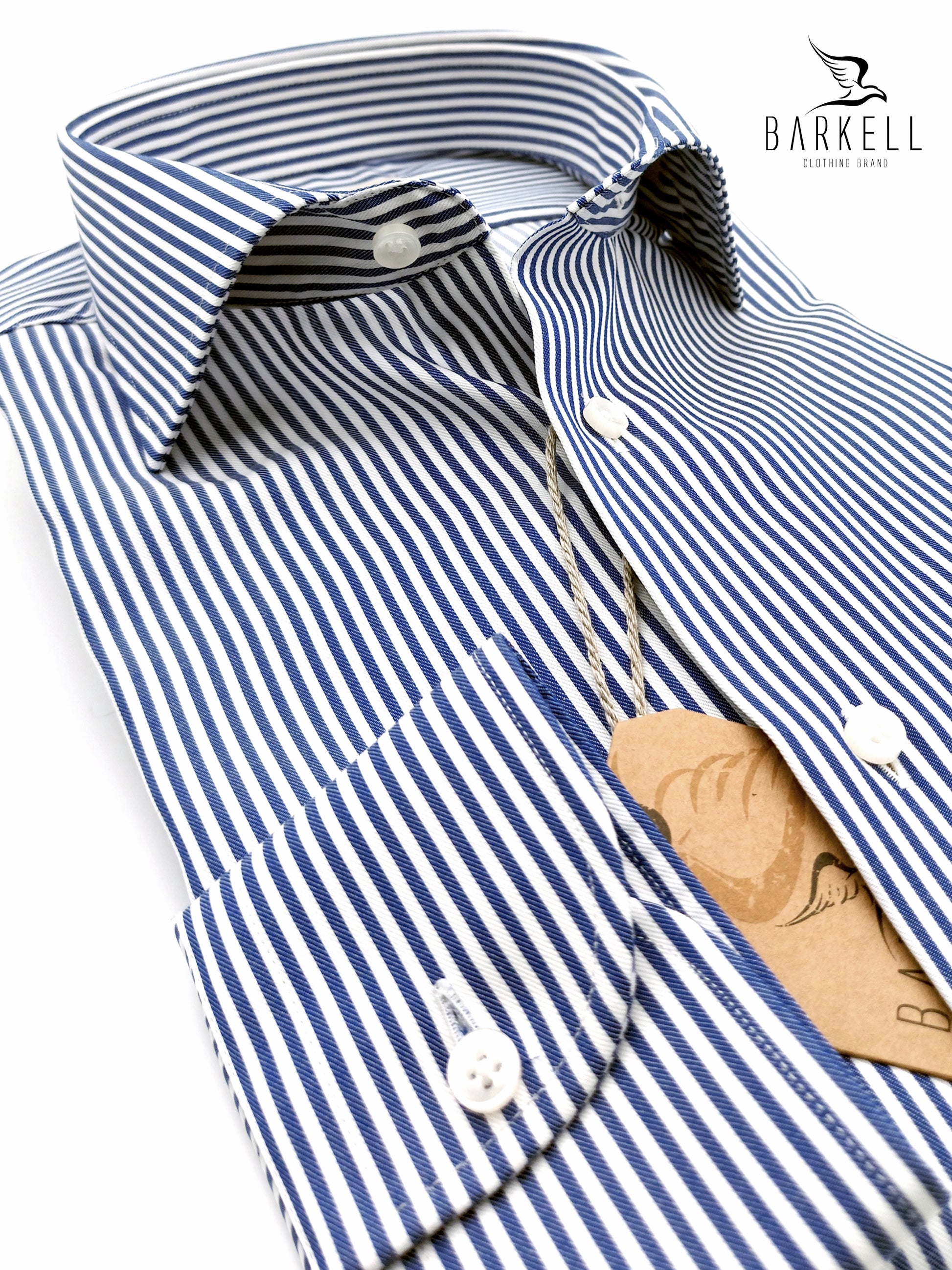 Camicia Rigata Bianca e Blu realizzata in Tessuto Twill 100% Cotone No Stiro.