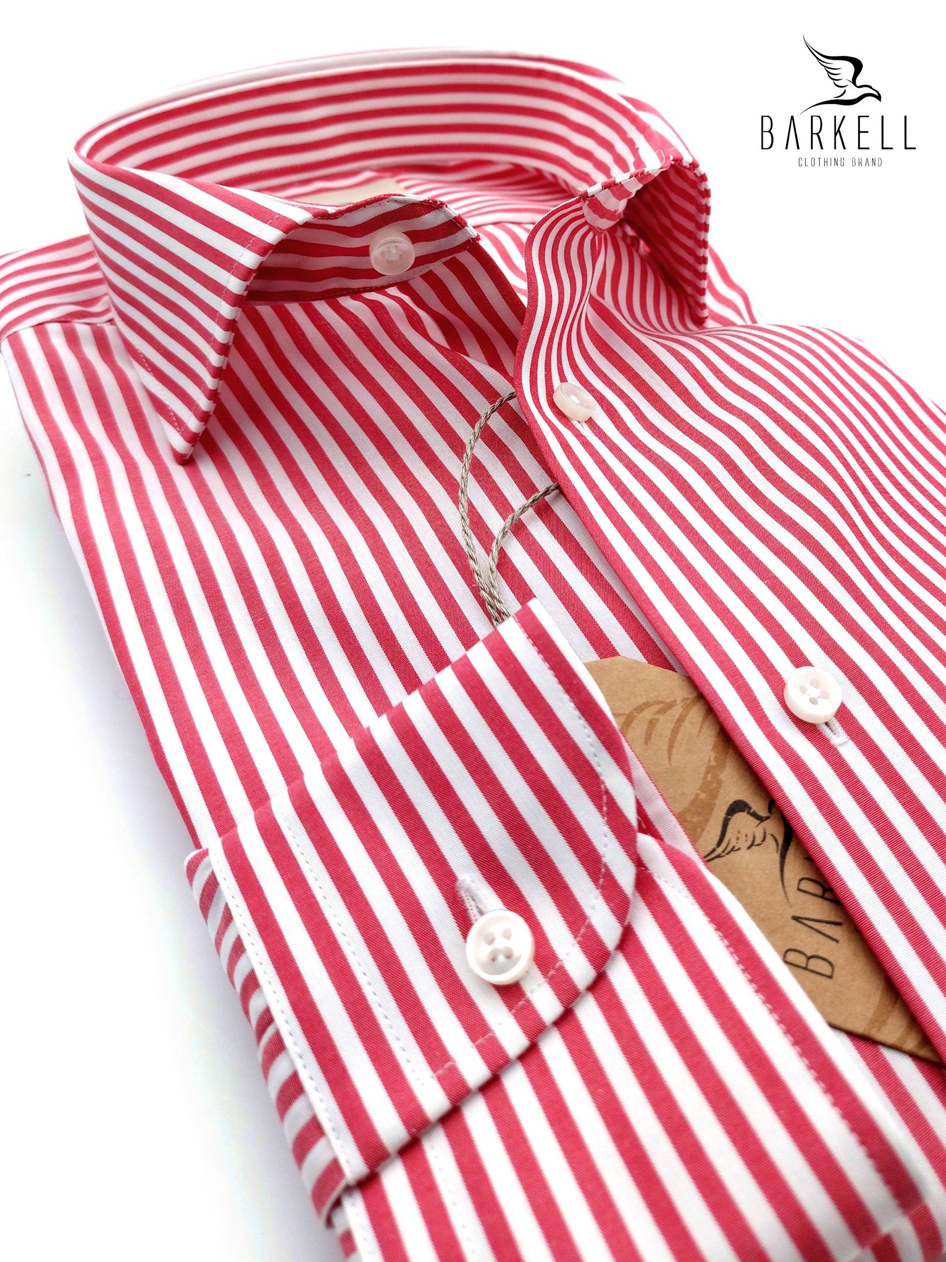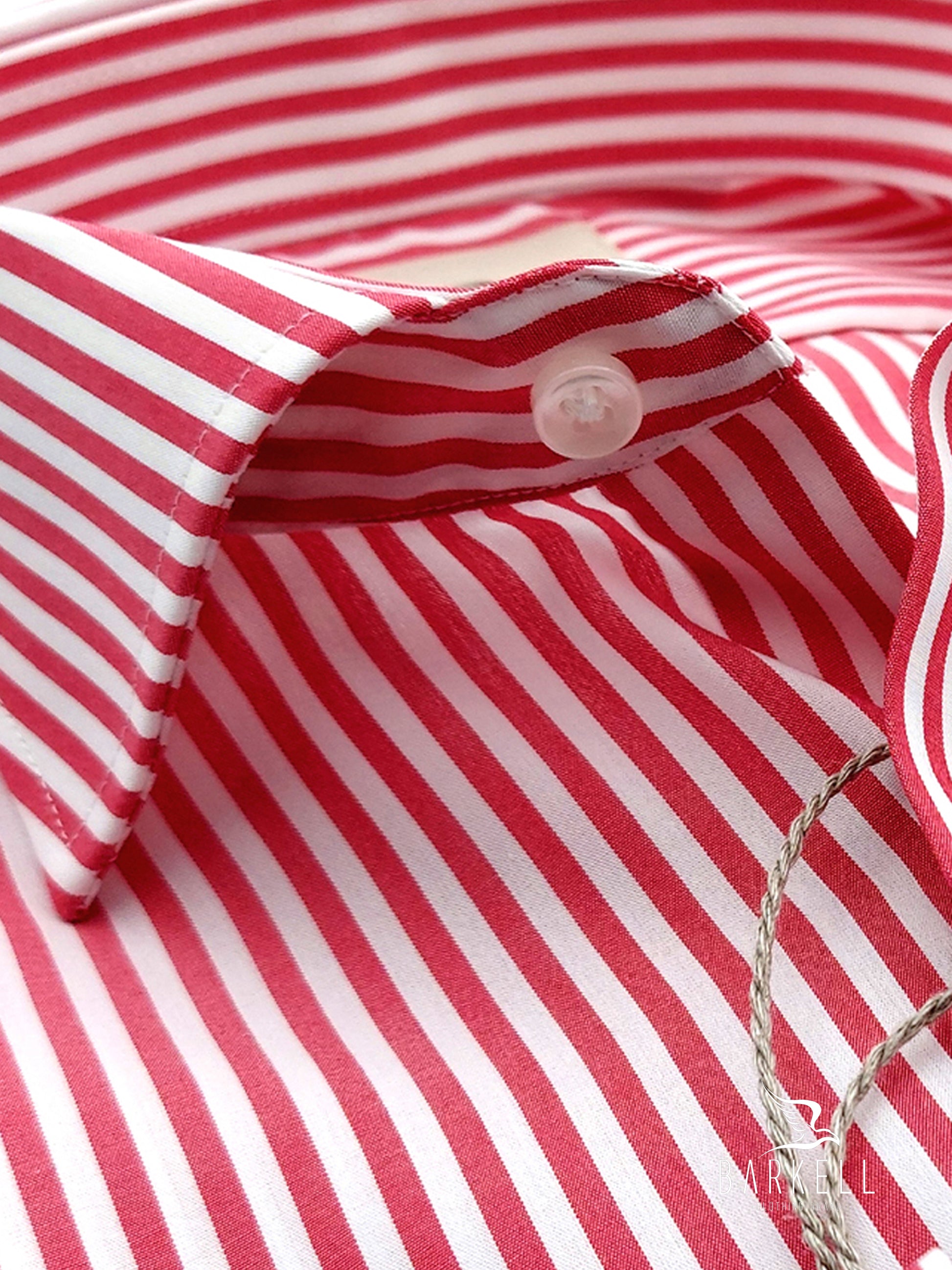 Camicia Rigata Rosso e Bianco realizzata in Tessuto Popeline 100% Cotone No Stiro.