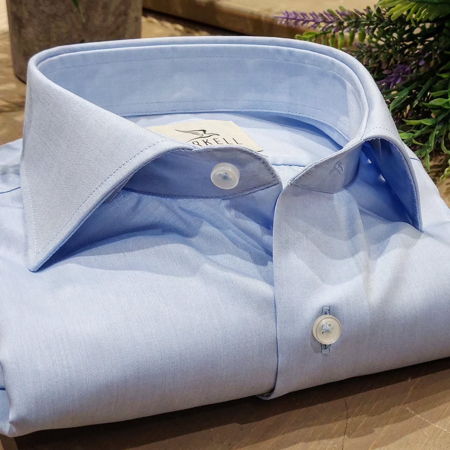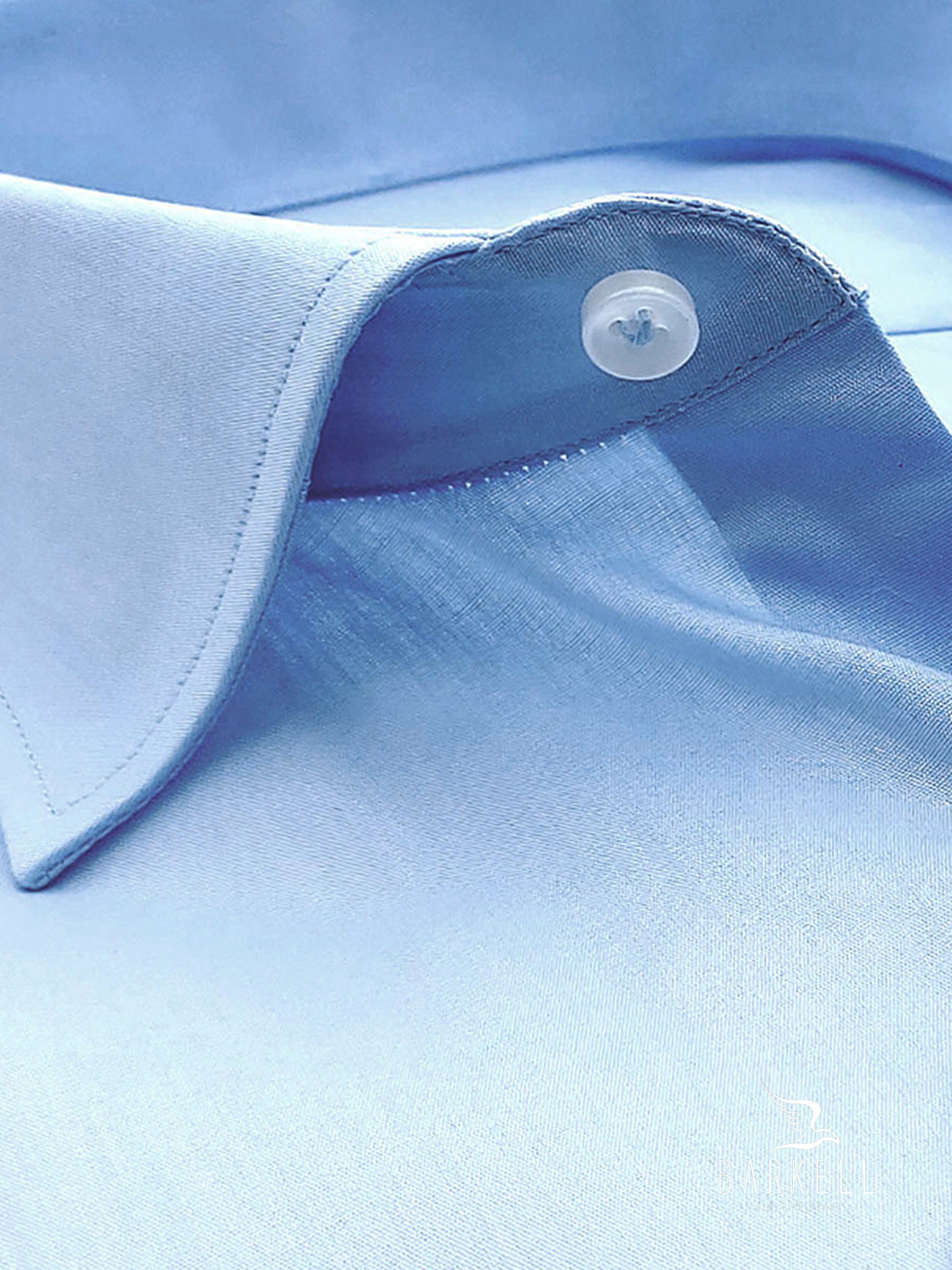 Camicia in Cotone No Stiro Zephir Celeste Collo Francese