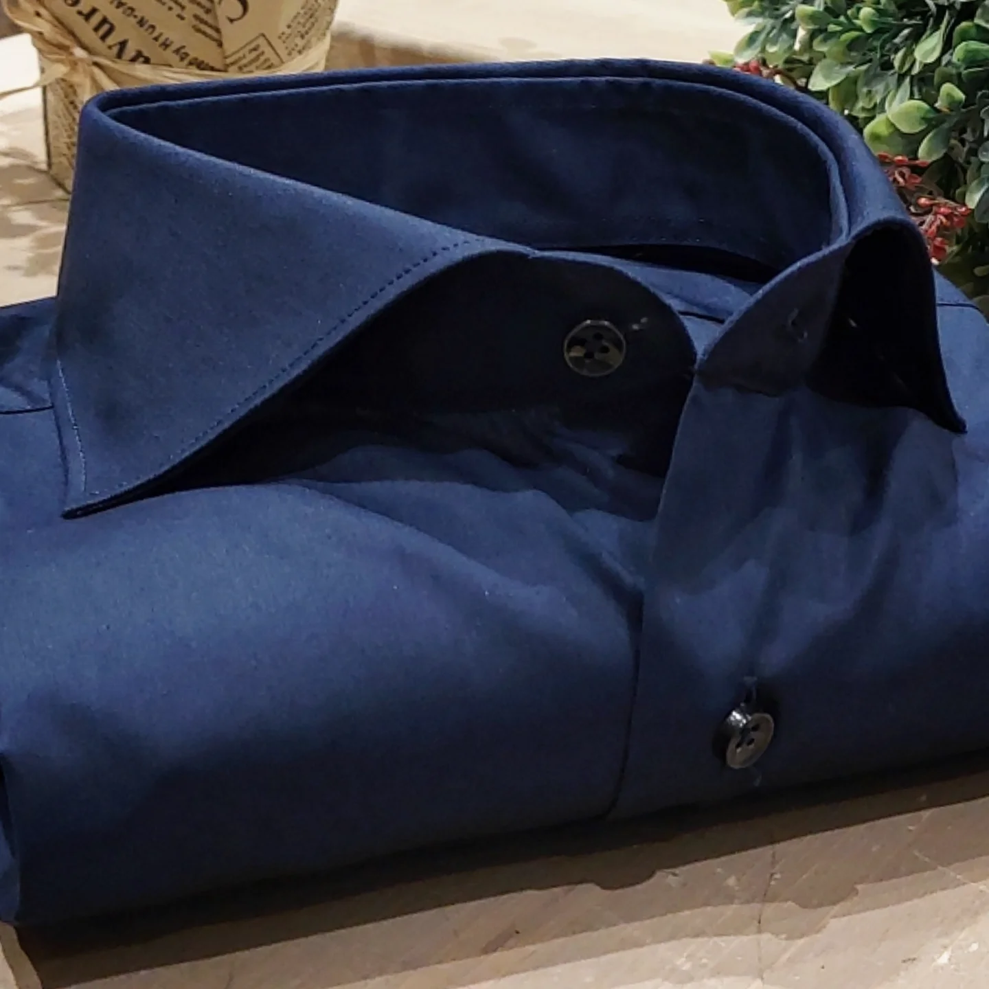 Camicia Blu realizzata in Tessuto Popeline 100% Cotone .