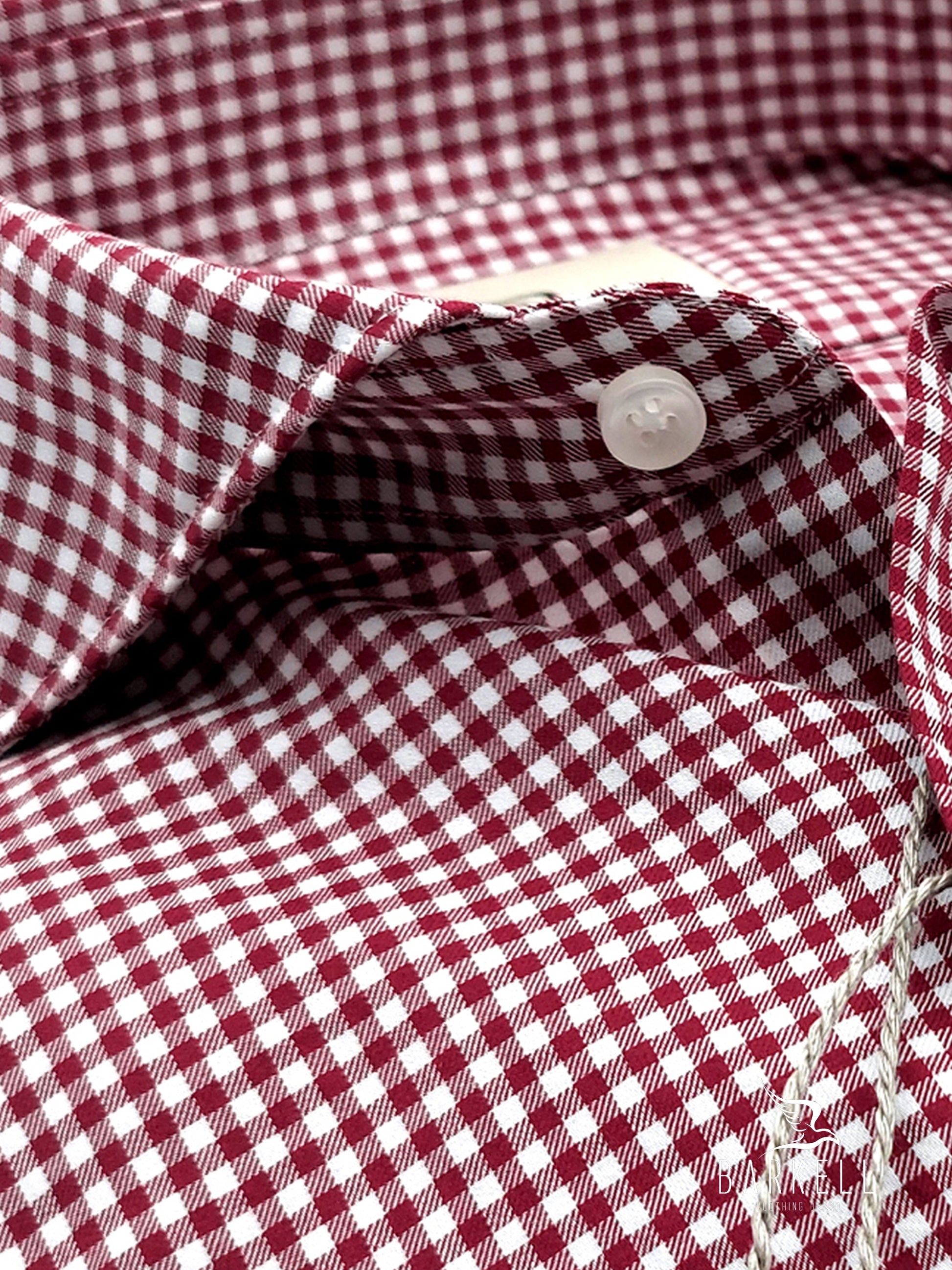 Camicia in Cotone Quadrettino Rosso e Bianco Collo Francese Cutaway