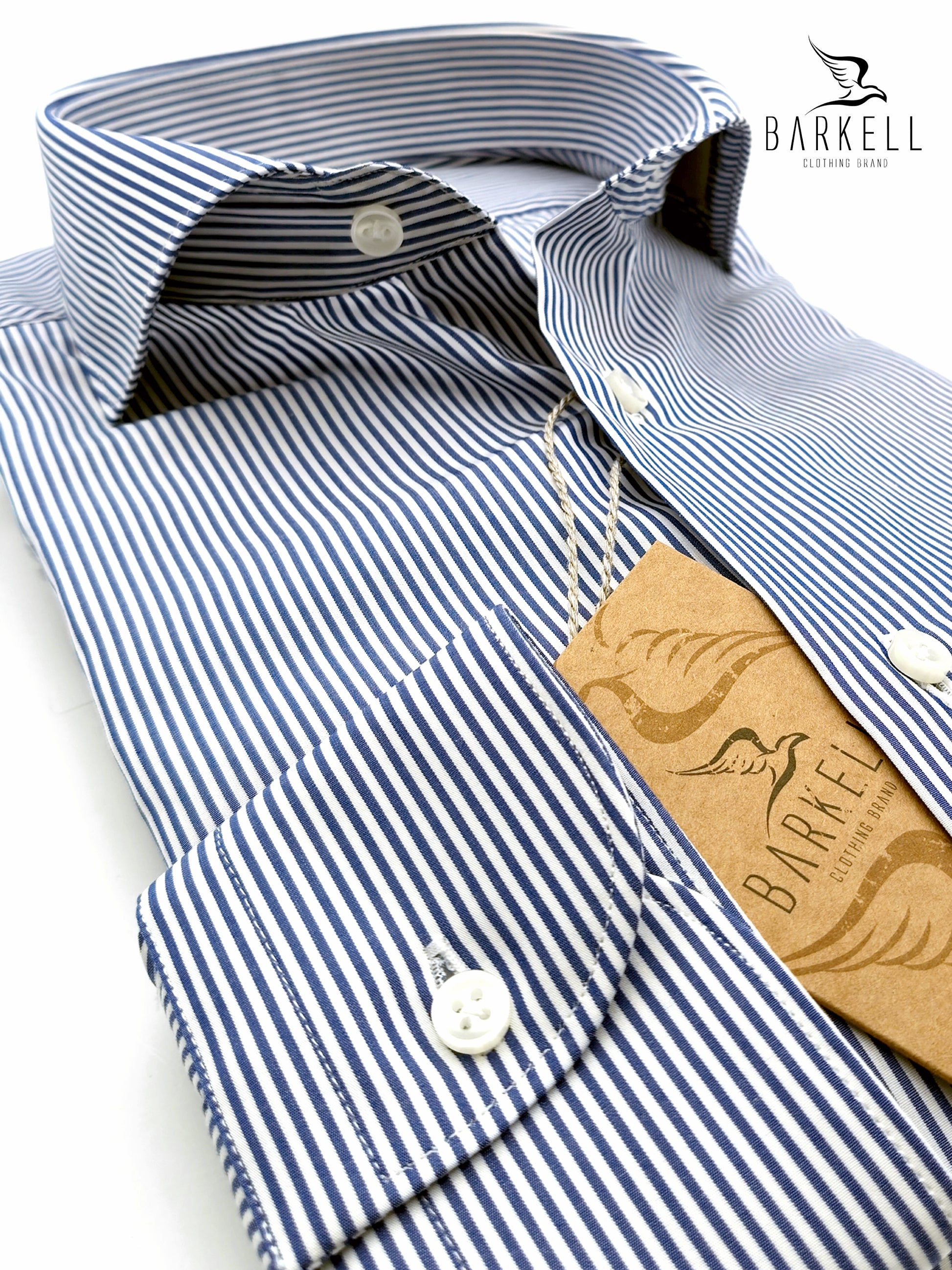 Camicia Rigata Bianca e Blu realizzata in Tessuto Popeline 100% Cotone .