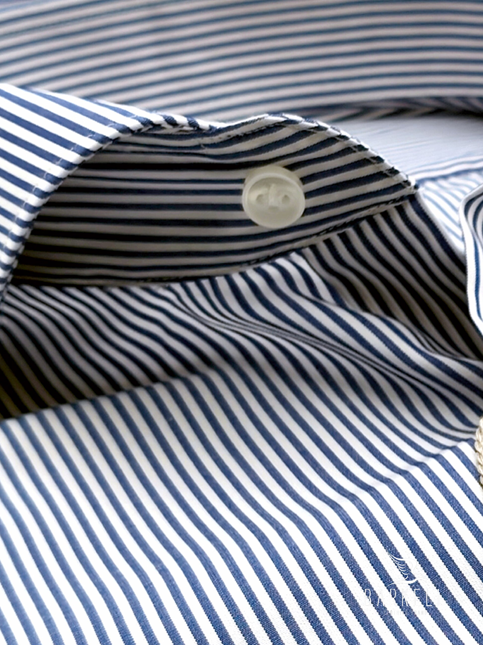 Camicia in Cotone Rigata Bianca e Blu Collo Francese Spread