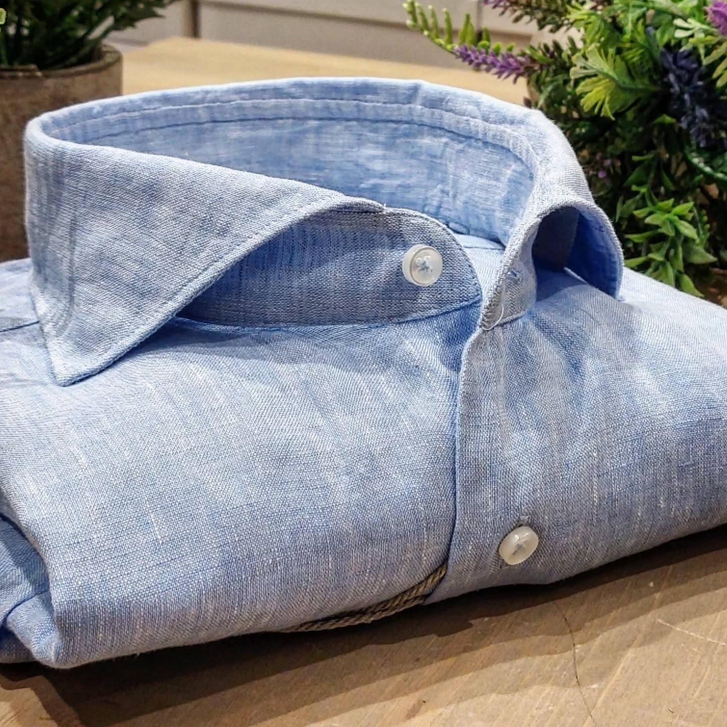 Camicia in Puro Lino Celeste Collo Francese Cutaway
