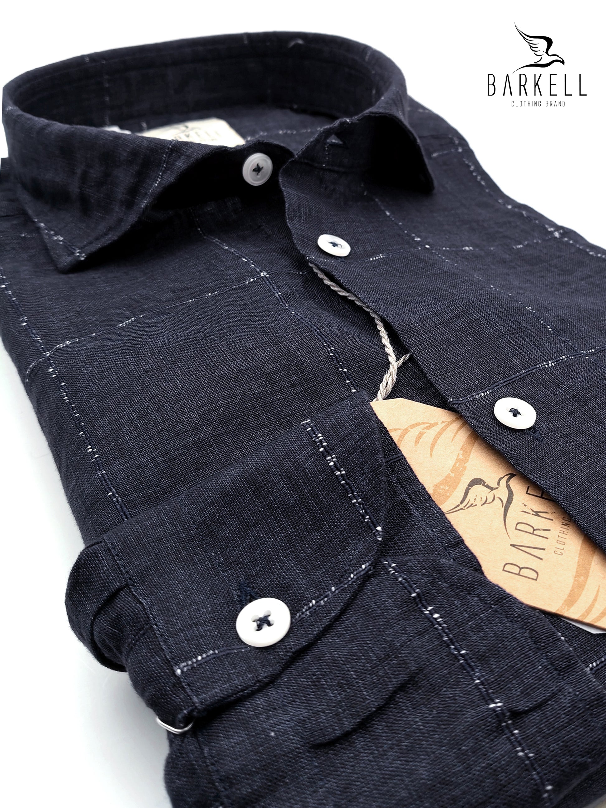 Camicia con Quandro Bianco su Fondo Blu realizzata in Tessuto 100% Puro Lino e Lavata in Capo per darle un piacevole effetto naturalmente vissuto.