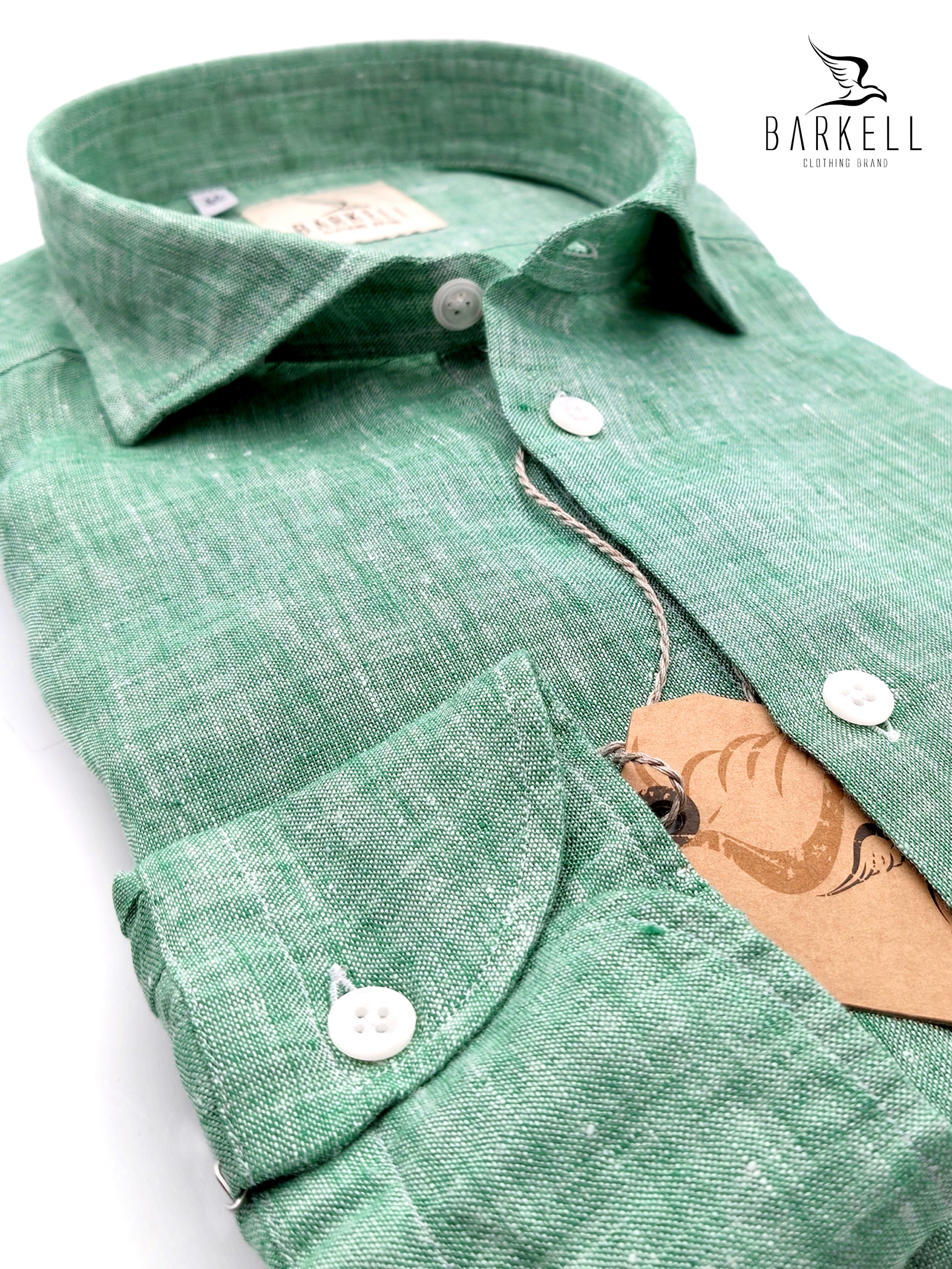Camicia in Puro Lino Verde Mela Collo Francese Piccolo