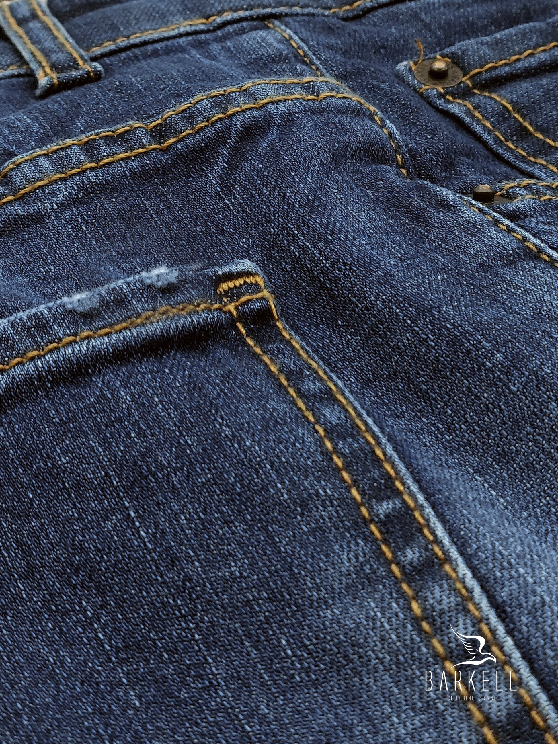 Jeans Modello Cinque Tasche Chiusura con Zip lavaggio Blu Stone Wash con Micro Abrasioni sui bordi delle tasche e sul fondo realizzato in 98% Puro Cotone Denim e 2% Elastan.
