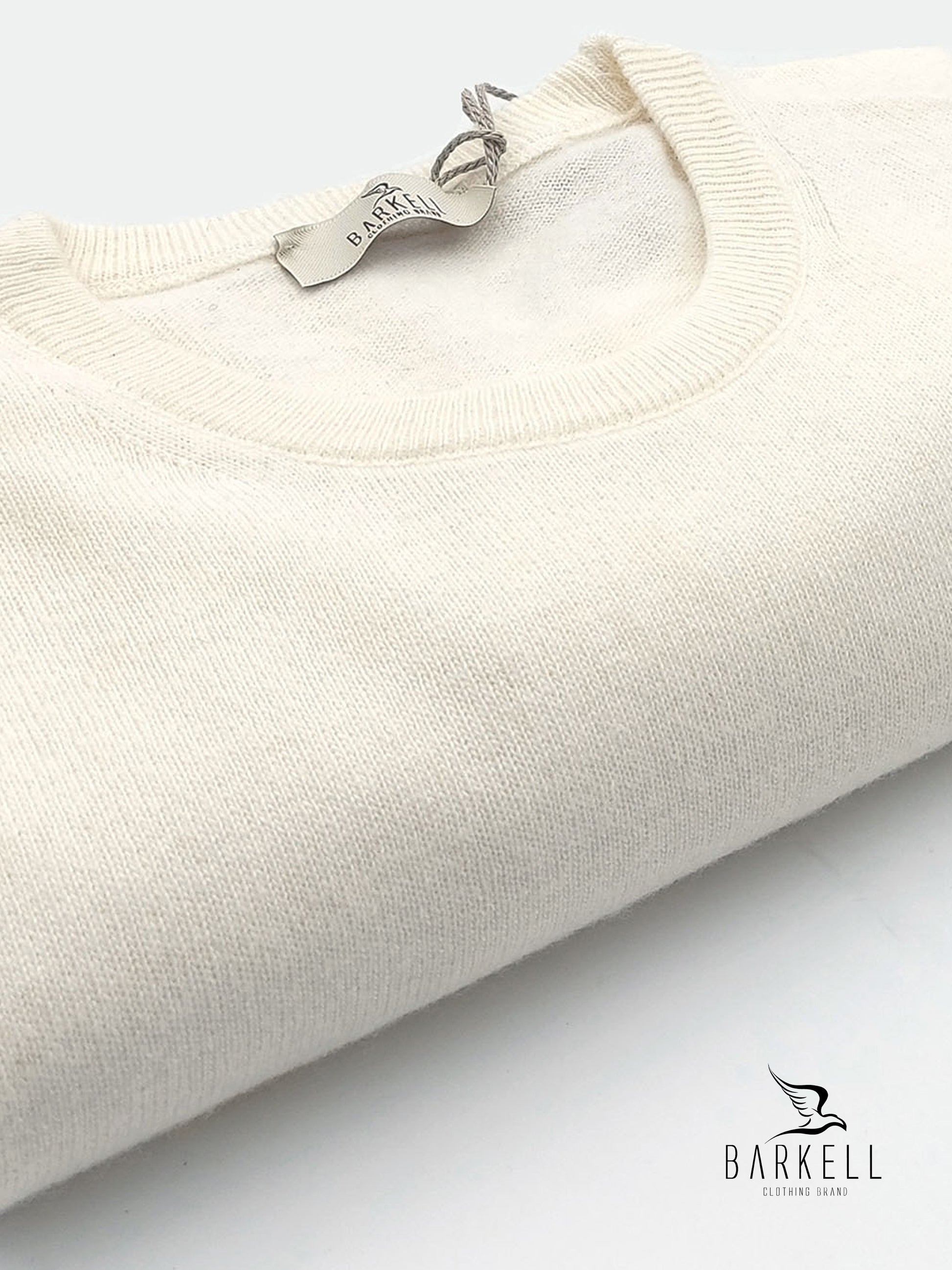 Maglia Girocollo Rasata in Misto Lana con 5% di Cashmere Color Gesso