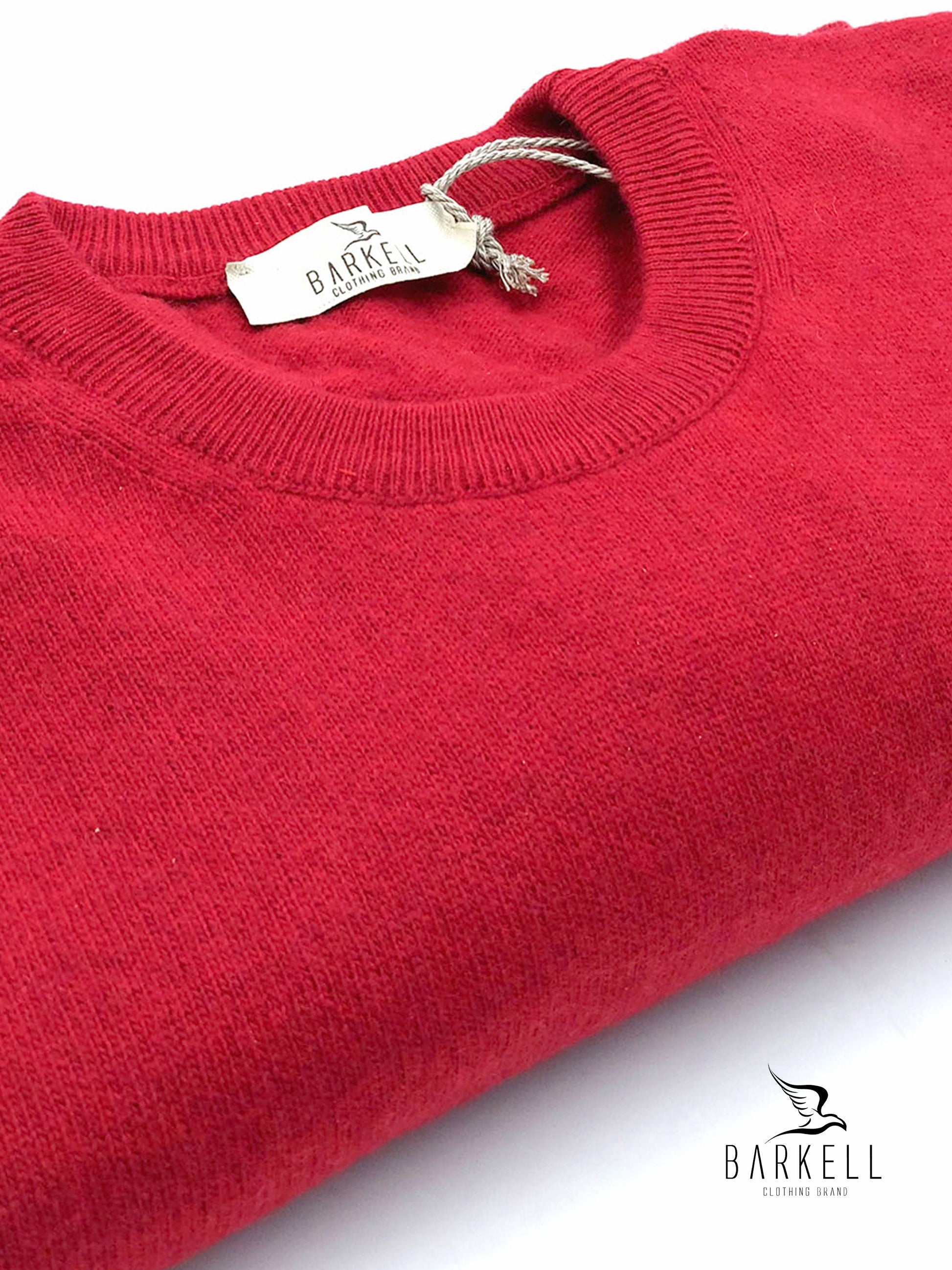 Maglia Girocollo Rasata in Misto Lana con 5% di Cashmere Color Rosso