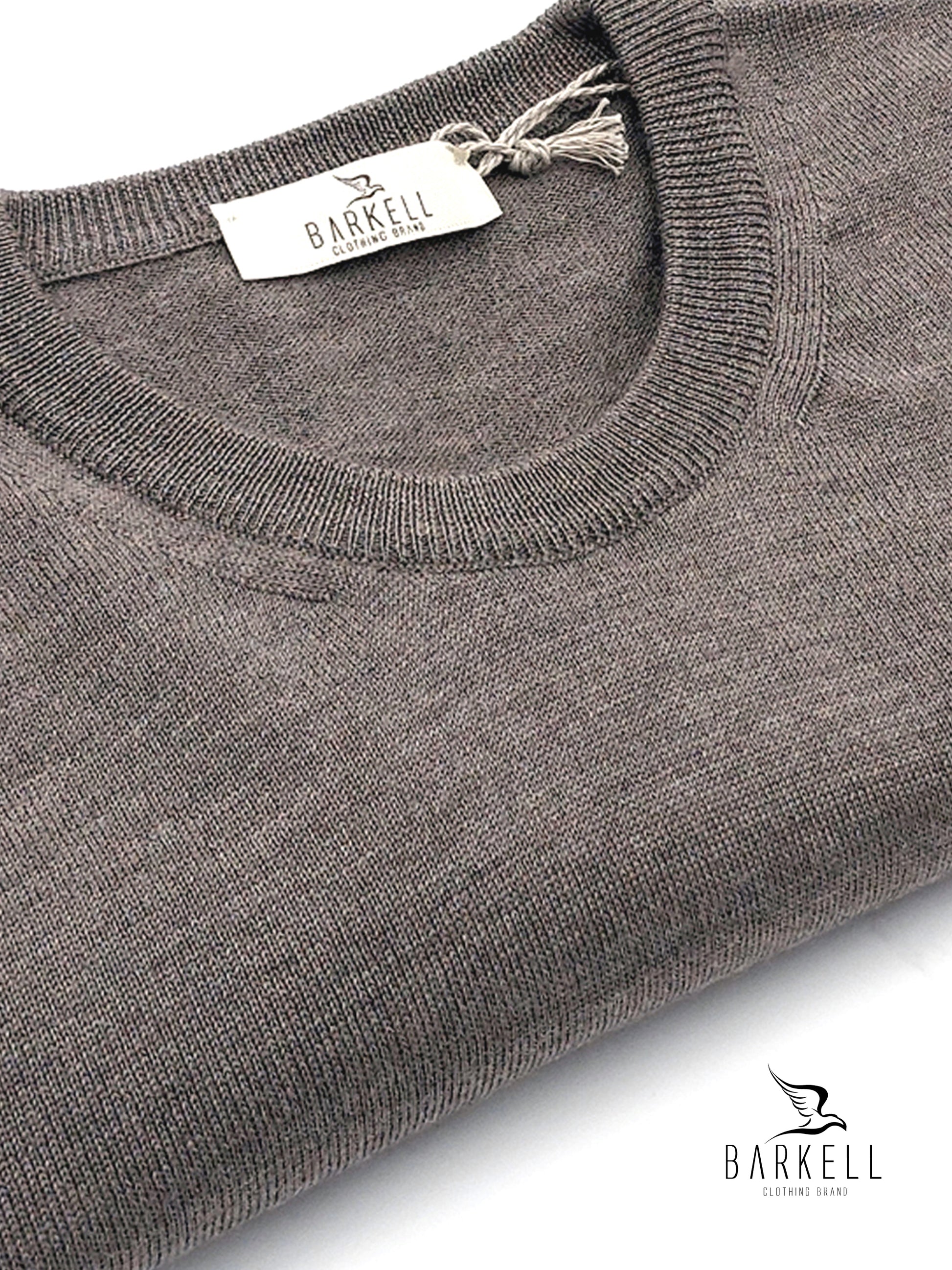 Maglia di Alta Qualità Girocollo color Nocciola realizzata in Pura Lana Merinos Extrafine,un filato di eccellente qualità che rende la maglia morbida,pettinata e confortevolmente calda.