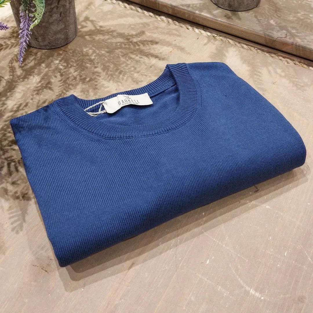 Maglia Girocollo Rasata Tinta in Capo color Blu Indaco realizzata in Puro Cotone.
